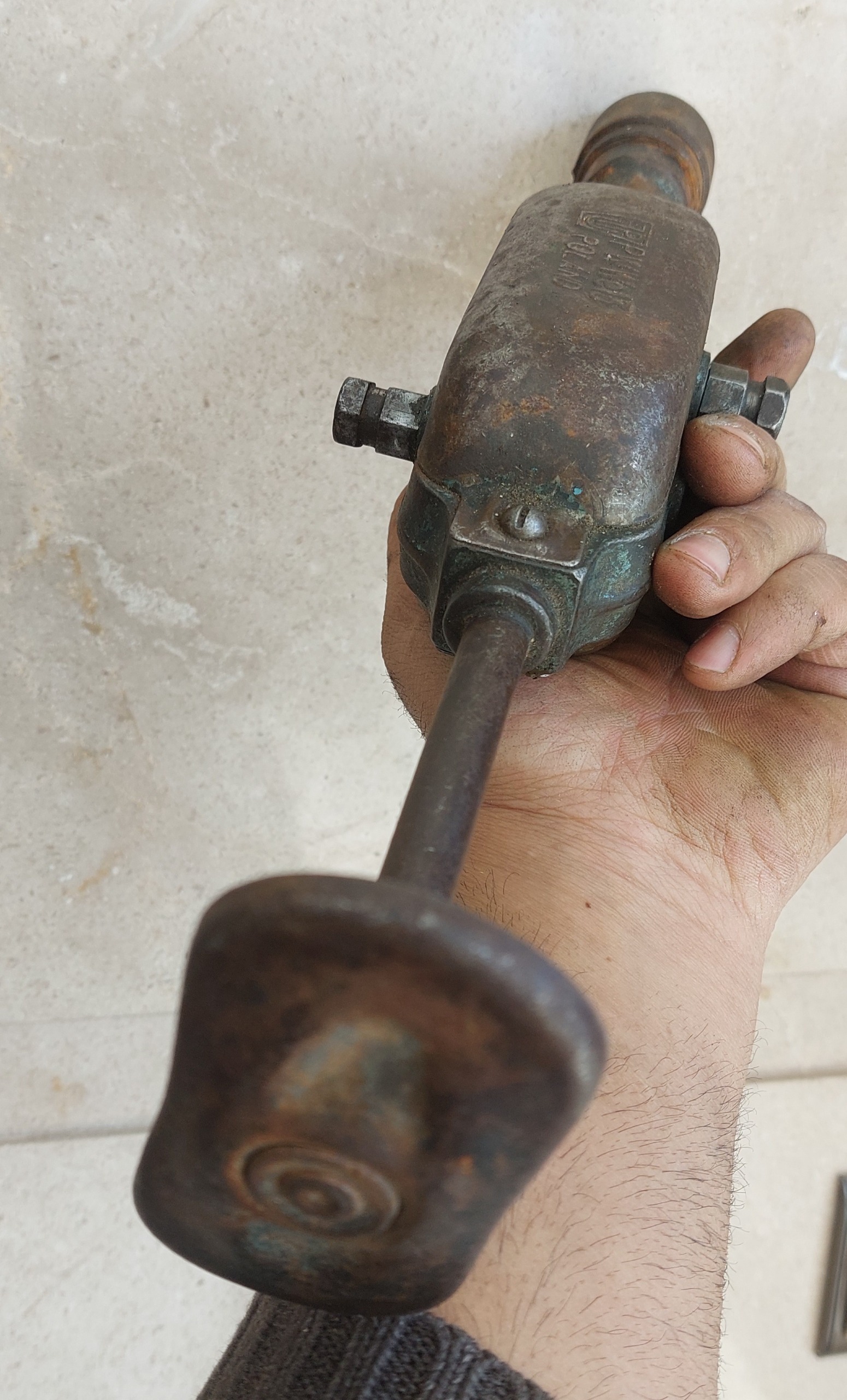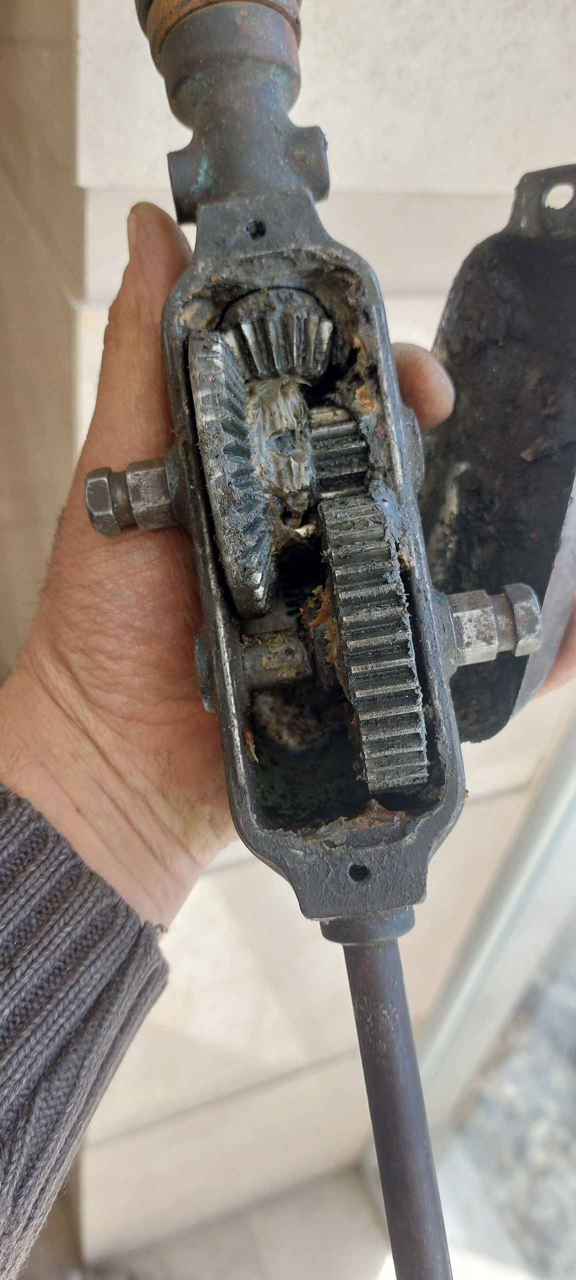 . دریل دستی قدیمی تمام فلزی سالم فقط یه شستشو میخواد و دسته واسه چرخاندن نداره.