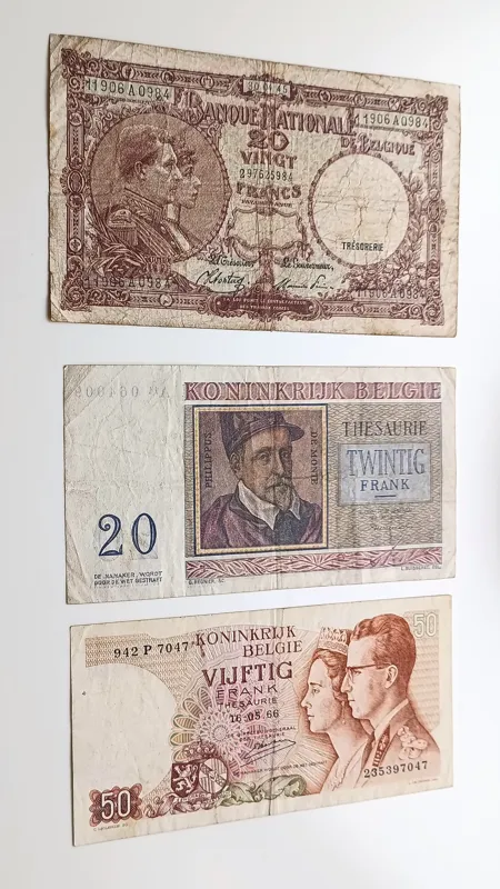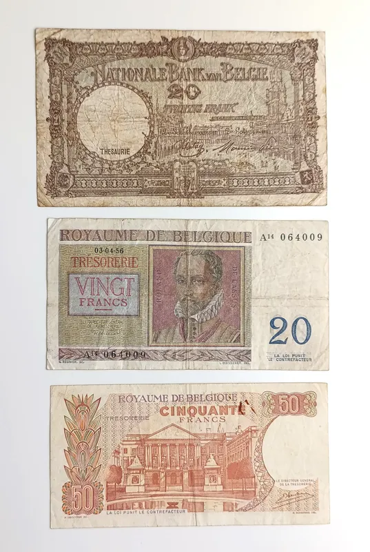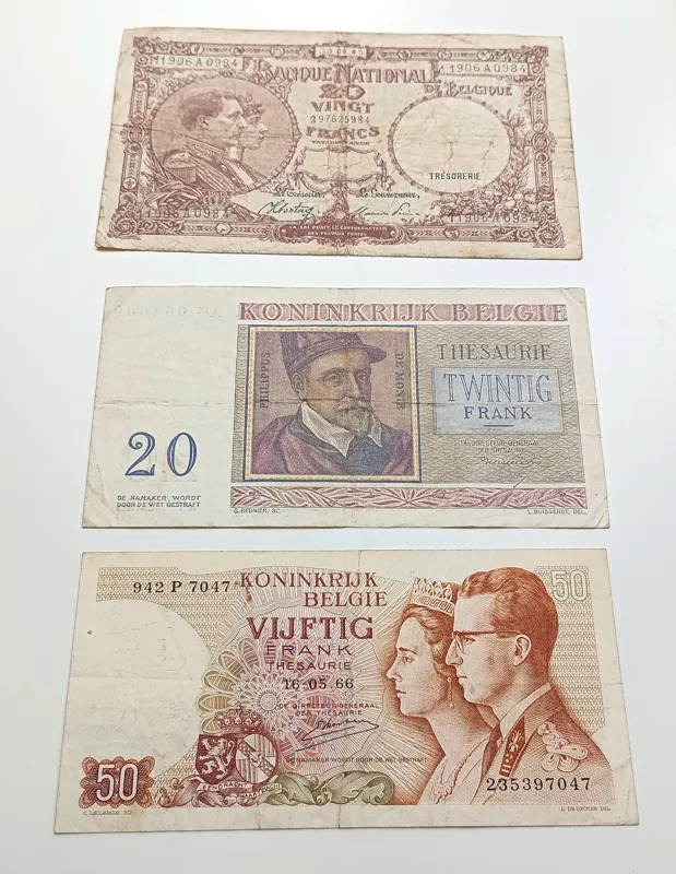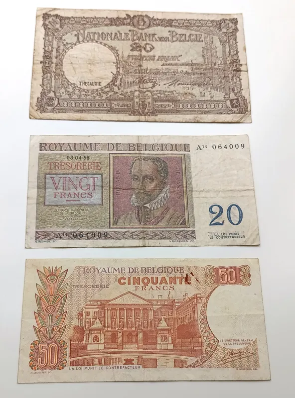 3 برگ اسکناس بلژیک 20 و 50 فرانک کارکرده قدیمی