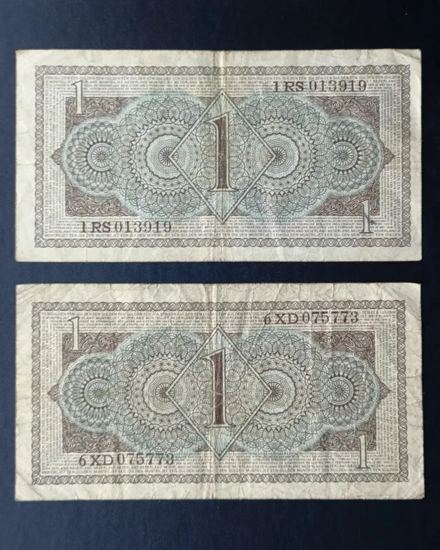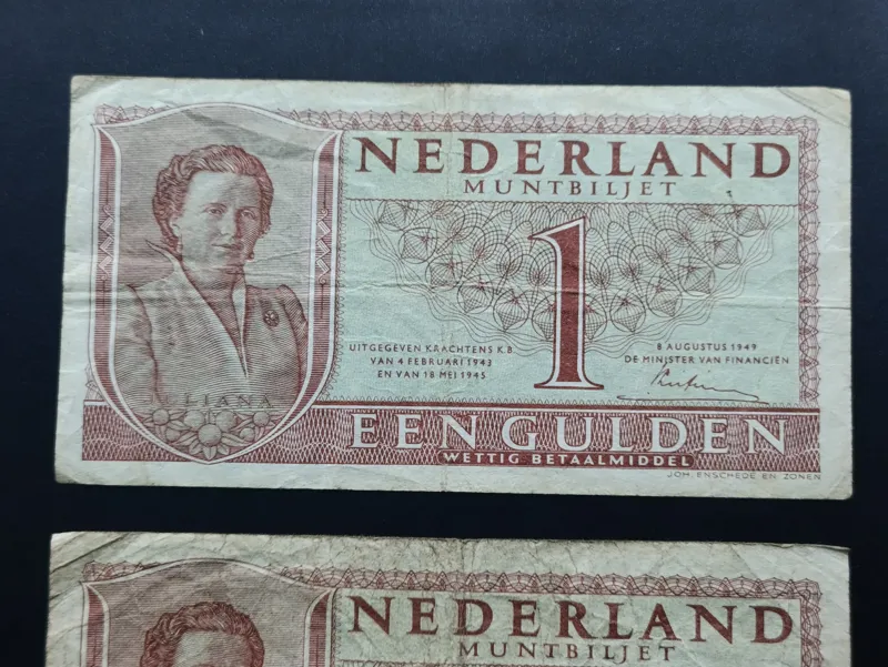 2 برگ اسکناس 1 گیلدر هلند 1949 ملکه یولیاناجولیانا