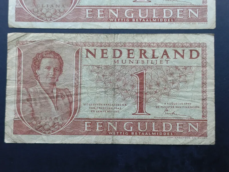 Een Gulden Juliana Muntbiljet یک گیلدن خولدن هلندی