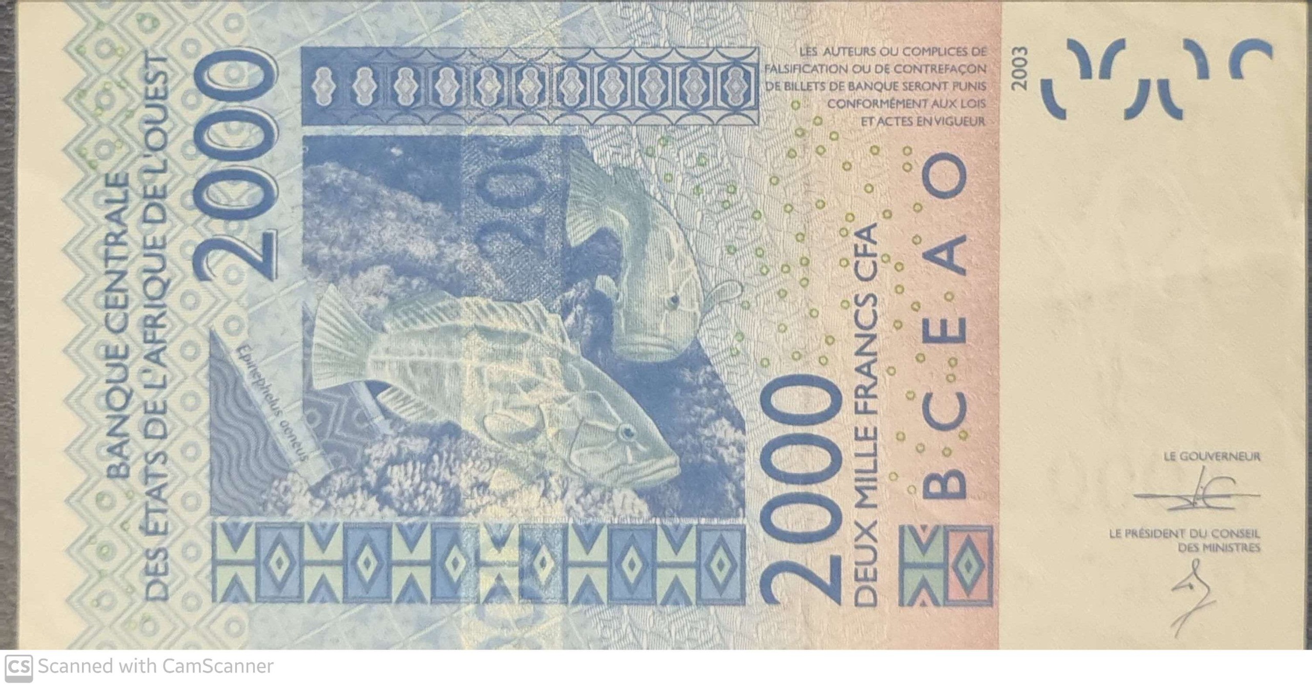 تک درحد کمیاب وکلکسیونی 2000 فرانک سیفا چاد