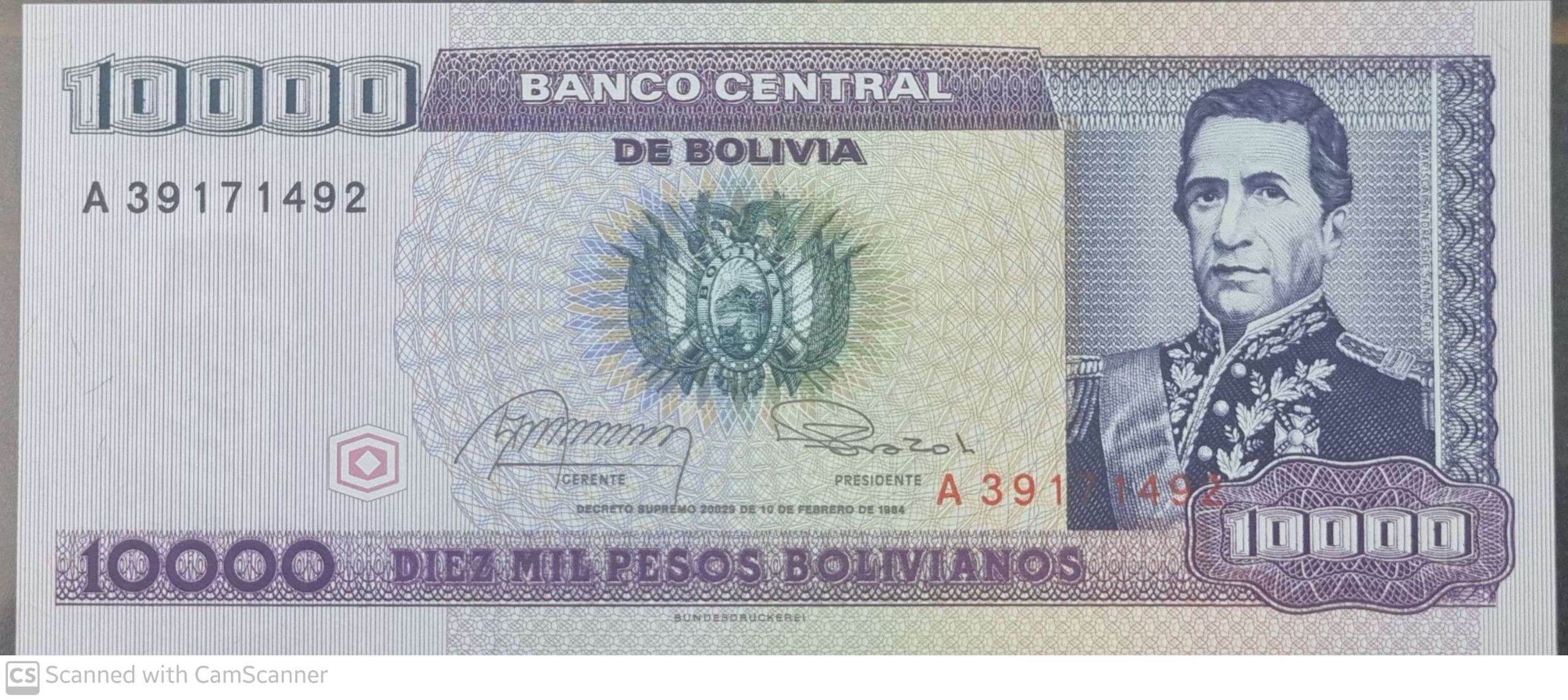 تک بانکی کلکسیونی 10000 پزو بولیوی 1984