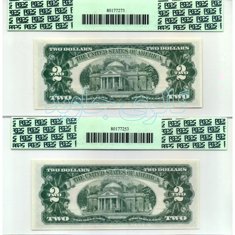 «جفت 2 دلاری مهر قرمز 1963 استار نوت PCGS»