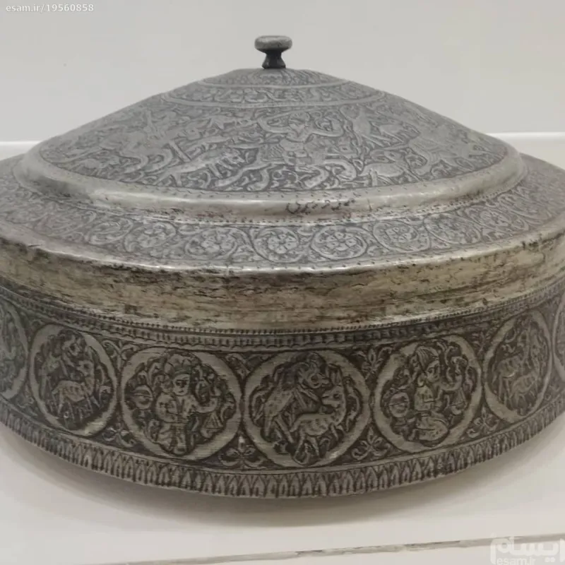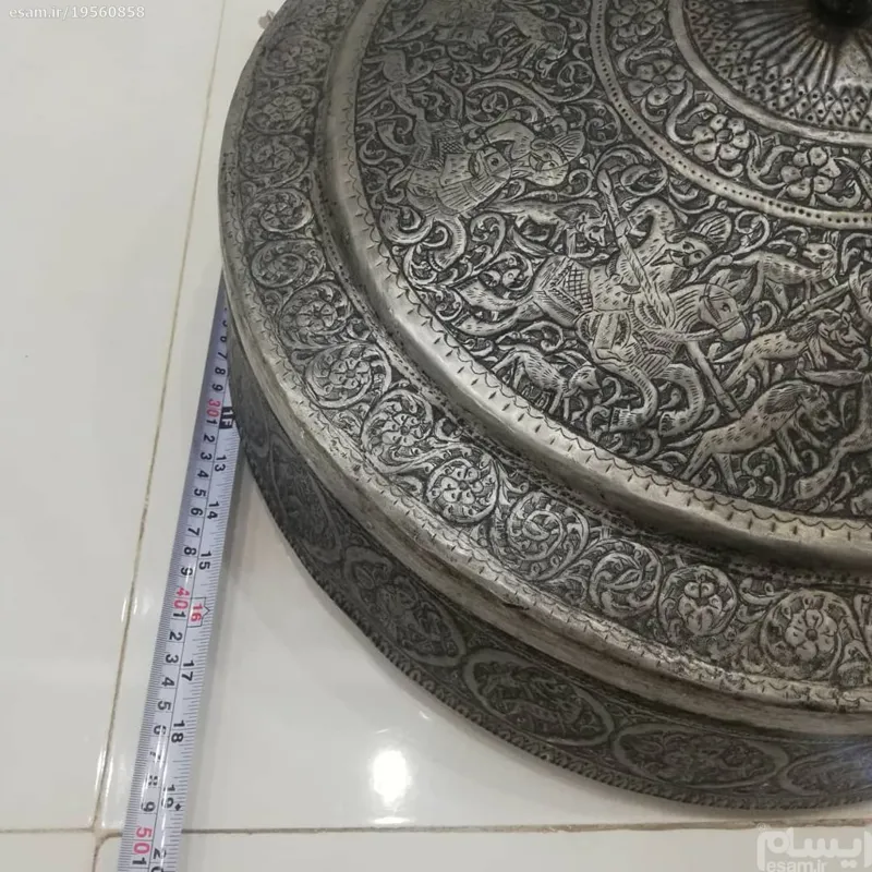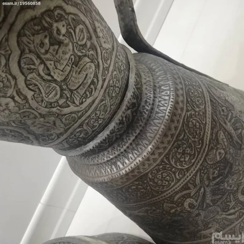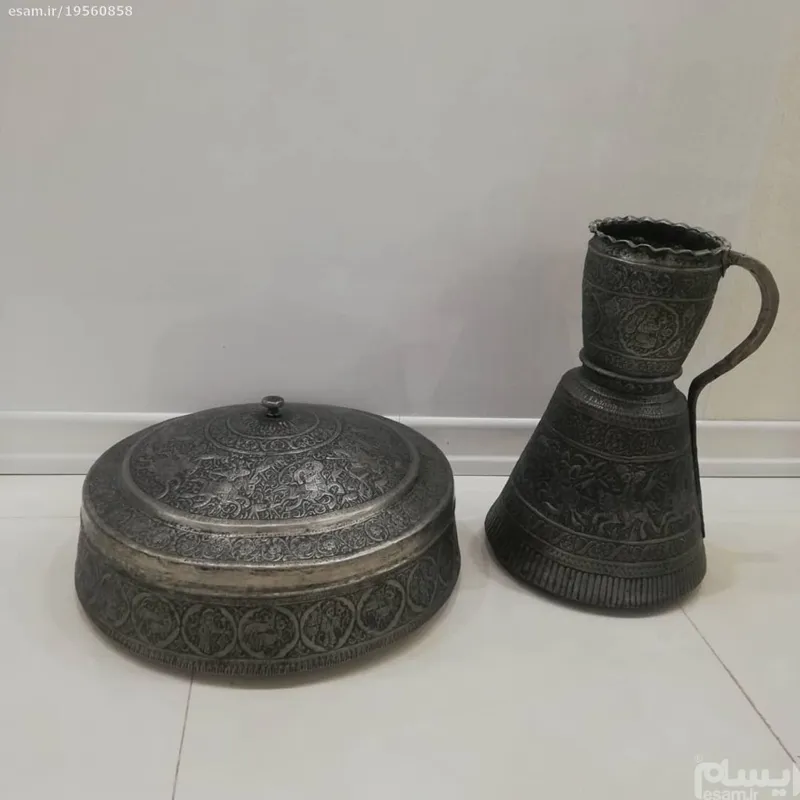 ست جانونی و مشرفه قلمزنی شده امضادار توسط استاد بزرگ قلمزنی ایران مرحوم استاد وزیری ، کاری فوق کلکسیونی و شاخص،قلم کهنه و مربوط به حداقل 60 سال قبل می باشد، سایز مشخصات در عکسهای کار مشخص گردیده است (هرگونه نمونه برداری یا کپی کار ممنوع است)