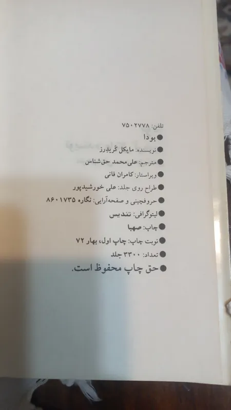 کتاب اثر «مایکل کریدرز» و ترجمهی «علیمحمد حقشناس» است. کتاب در پنج بخش تدوین شده که عنوانهای آنها عبارتند از «درآمد»، «اوایل زندگی و ترک نفس»، «به سوی بیداری»، «بیداری»، «رسالت و مرگ» است. در کتاب ، مایکل کریدرز ما را در انتخاب صحیح از میان اطلاعات پیچیده و گاه متناقضی که متون یی در مورد زندگی و تعالیم ارائه میدهند، راهنمایی میکند. او در مورد پس زمینههای سیاسی و اجتماعی هند در زمان و همچنین روند توسعه تفکر و فلسفه او بحث میکند. این کتاب با ارائه مطالب به صورت گامبهگام و آموزنده هم راهنمایی است برای کسانی که به مذهب و مطالعه تطبیقی ادیان علاقهمند هستند و هم برای کسانی که شیفته فلسفه والای یکی از بزرگترین متفکران دینی هستند. در قسمتی از کتاب میخوانیم: «روزی شاهزاده که برای تفریح بیرون رفته بود، از دیدن چهار منظره به شدت تحت تاثیر قرار گرفت، پیرمردی بسیار شکسته، مریضی درمانده، جنازه یک مرده و در آخر زاهد مذهبی آرامی که از هیچ غم و غصهای در تشویش نبود. وی از این فکر که روزی خودش و همه افراد بشر به پیری، بیماری و مرگ دچار خواهند شد، مضطرب و پریشان خاطر شده و اعتقاد پیدا کرد تنها از طریق جستجو و فداکار توام با ثبات قدم می توان به آرامشی ظفرمندانه دست یافت.» این کتاب را نشر «طرح نو» منتشر کرده است.