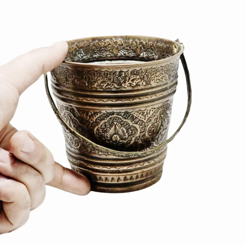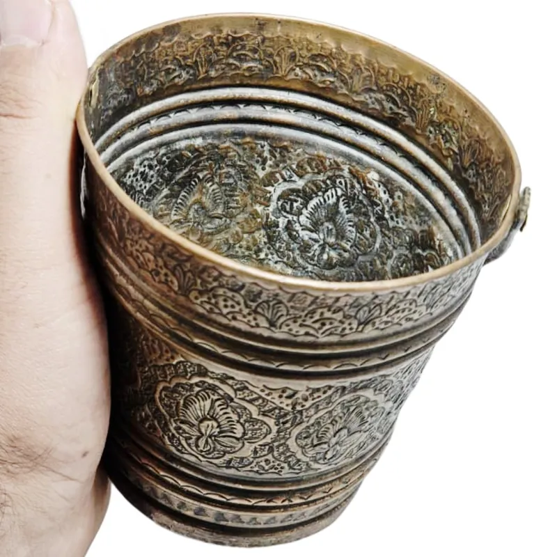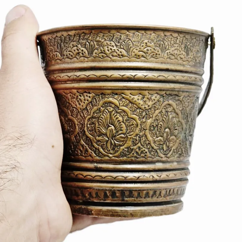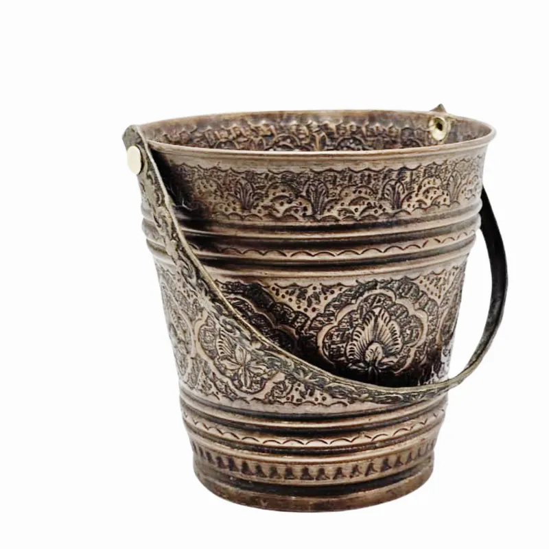 سطل قدیمی آنتیک قلمزنی قلم زنی جهیزیه کلکسیونی