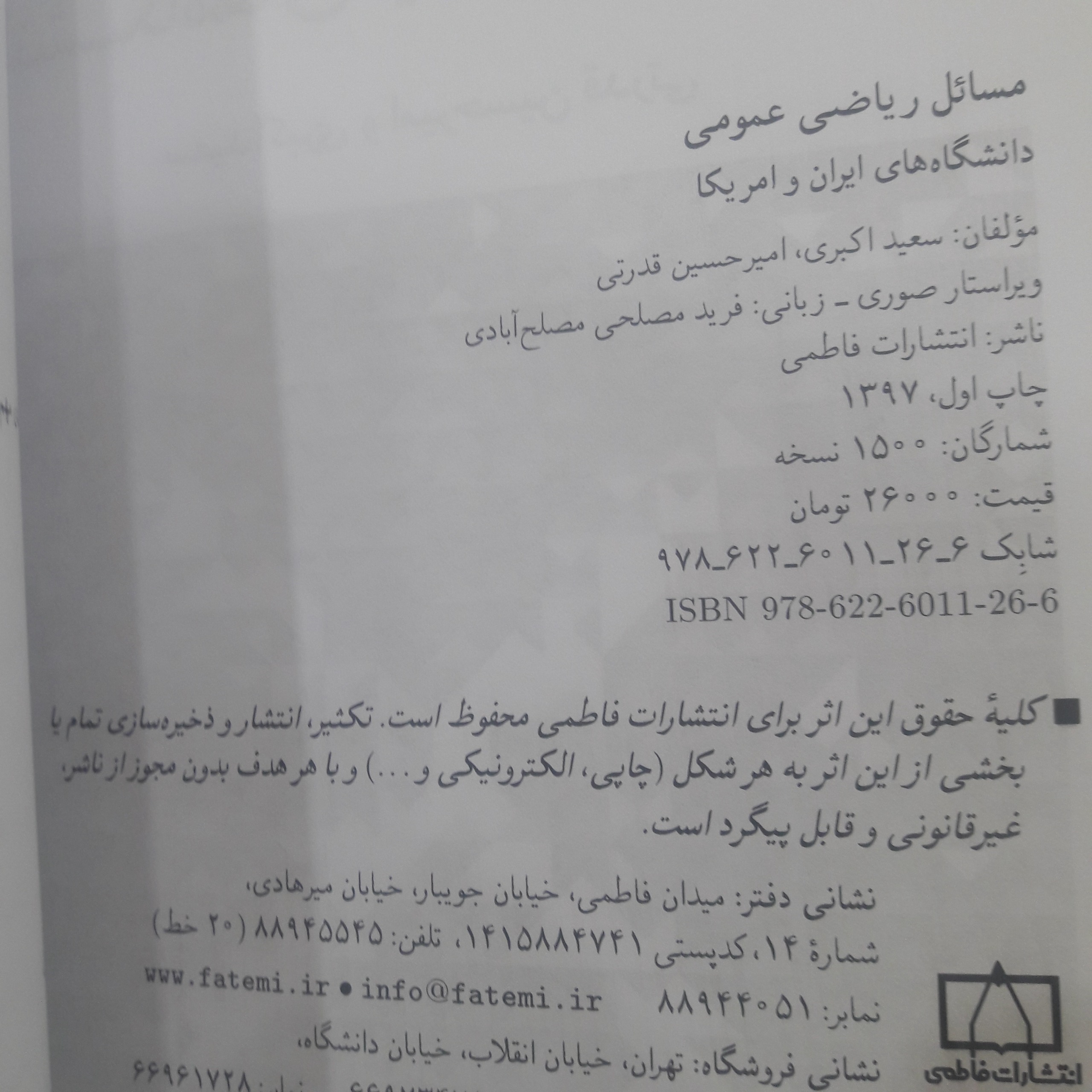 چاپ اول سال 1397 - انتشارات فاطمی