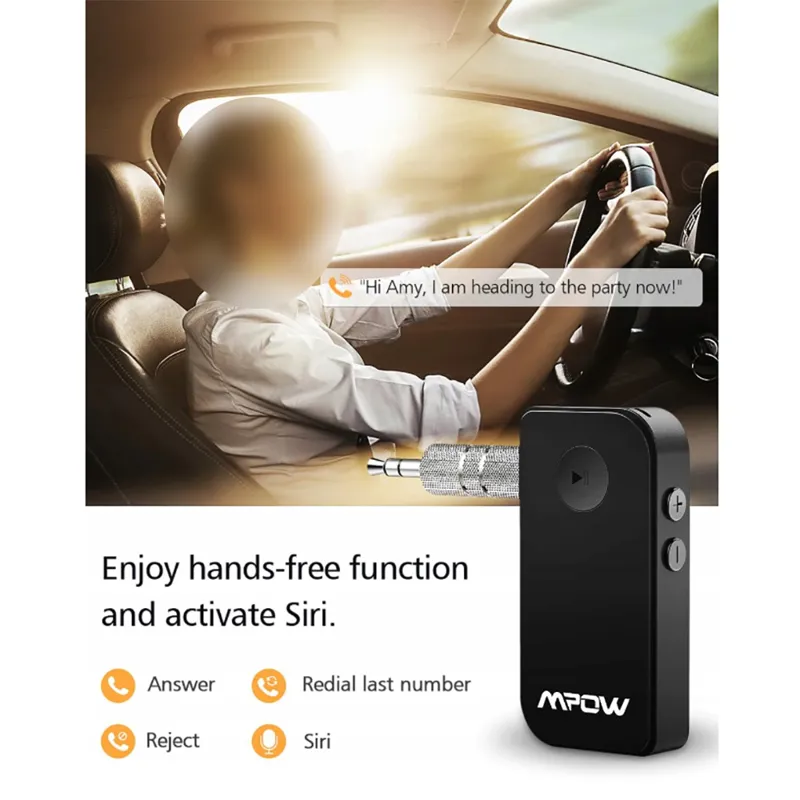 اتصالات دوگانه و سازگاری گسترده : گیرنده بلوتوث قابل حمل MPOW می تواند دو دستگاه بلوتوث را به طور همزمان متصل کند . همچنین میتواند با اکثر گوشیهای هوشمند و لوازم الکترونیکی بلوتوث سازگار باشد ، برای سیستمهای صوتی خانگی یا خودرو و هدفونهای سیمی مناسب است (از طریق کابل/آداپتور صوتی 3.5 میلیمتری به MPOW متصل میشود، سپس تلفن خود را با MPOW جفت کنید تا به موسیقی گوش دهید یا به تماسها پاسخ دهید .