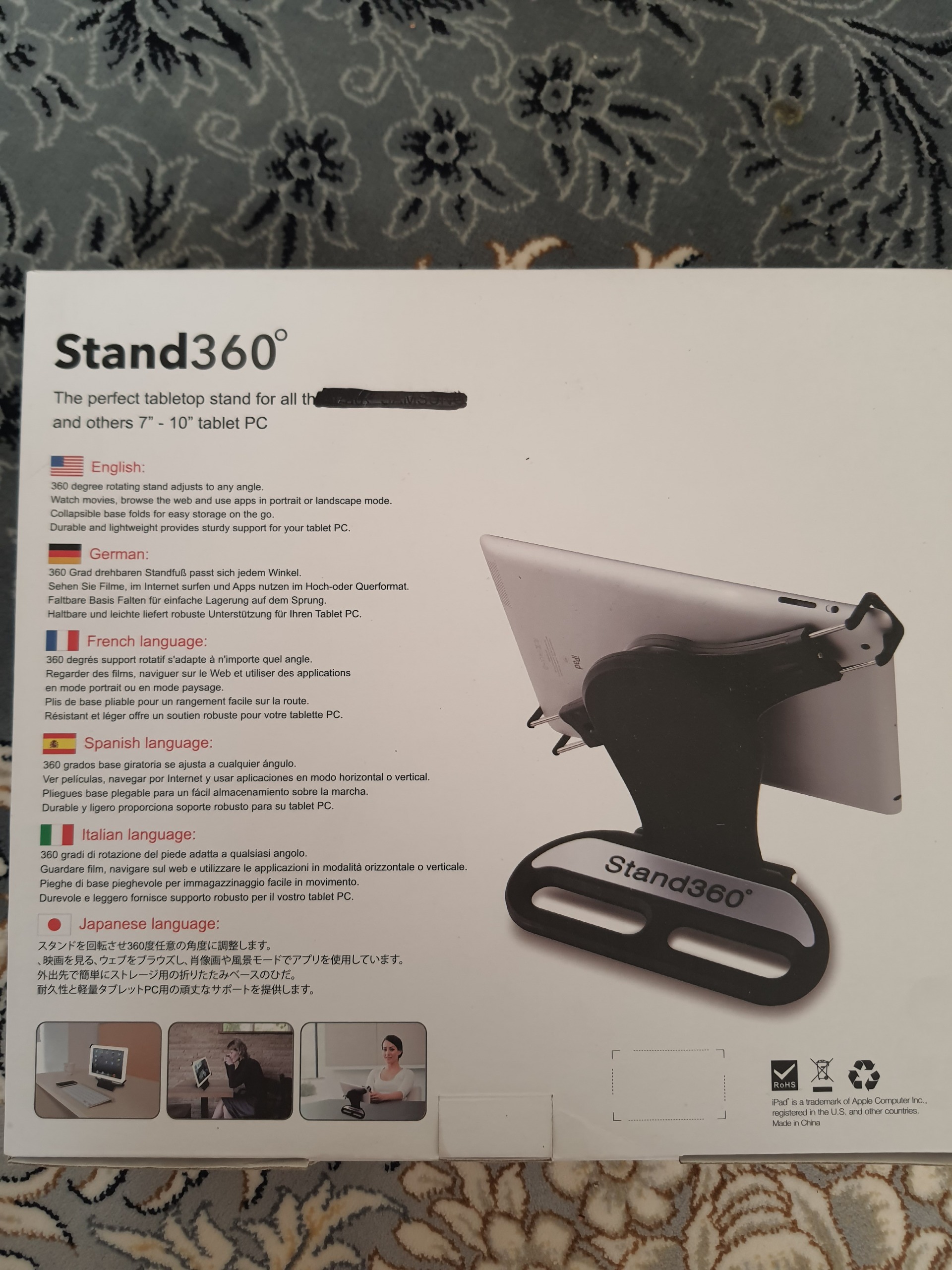 استند تبلت 7 تا 10 اینچی با قابلیت گردش 360 درجه. کاملا نو و آکبند. دارای کیفیت بسیار بالا.