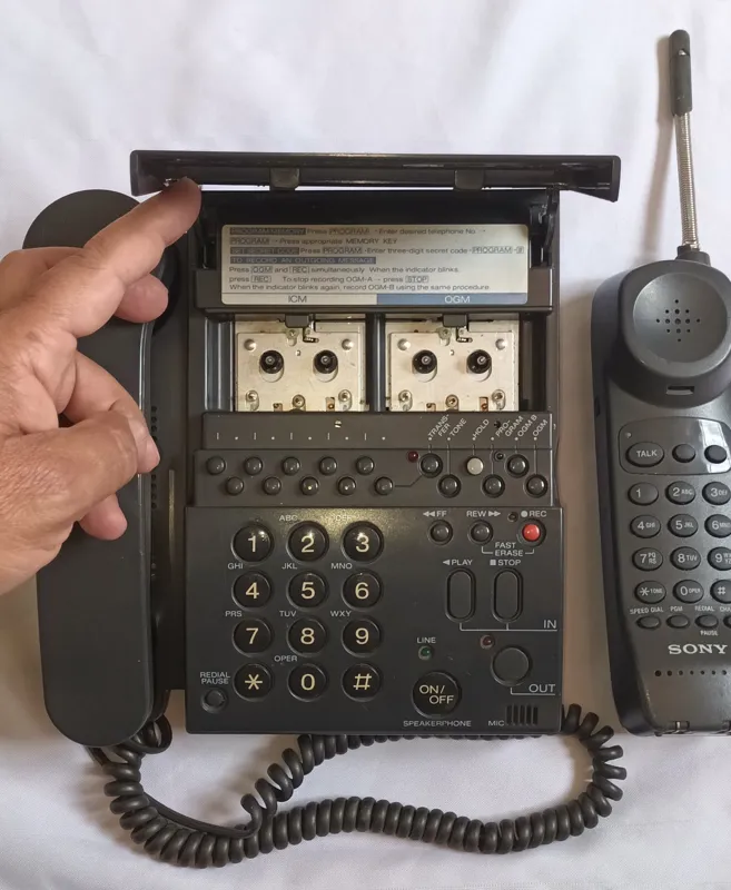 گوشی سونی اصلی ساخت ژاپن،کلکسیونی،نوار کوچک میخوره، خودتلفن سالمه هم زنگ میخوره هم تماس داره،قسمت کاستها موتور سالمه و نیم دور میچرخه ولی امکان تست با کاست کوچک نداشتم،وازعملکردش بی اطلاعم،گوشی بیسیم پایه شارژ نداره، به آداپتور وصل کردم چراغش روشن میشه ولی عملکرد نداره، لطفا درخریددقت شود وقبل ازخریدپیا بدین، سوال درخدمتم