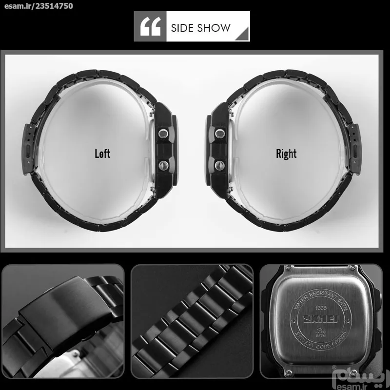 آلارم, بک لایت, تایمر, تقویم, دو ساعت همزمان, کرنومتر, نمایش 24 ساعته |