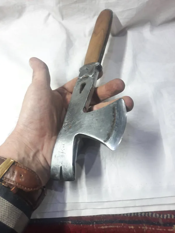 عزیزان این تبر با طول تقریبا 34 سانتی متر قدمتی بالای 50 سال داره و از فولاد بسیار آبدیده ساخته شده .