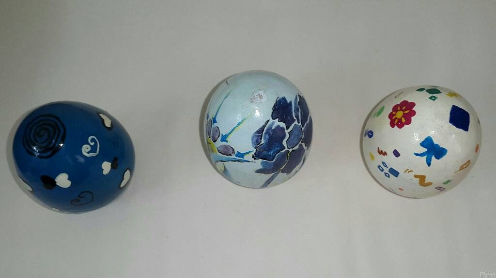 سه عدد تخم مرغ سفالی رنگی کار دست برای سفره هفت سین