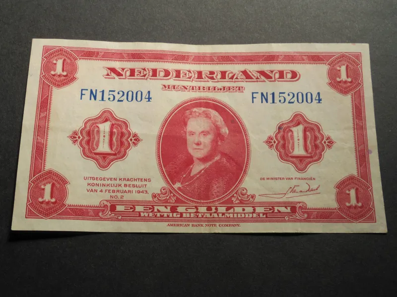 اسکناس 1 گیلدر قدیم هلند 1943 ملکه ویلهلمینا