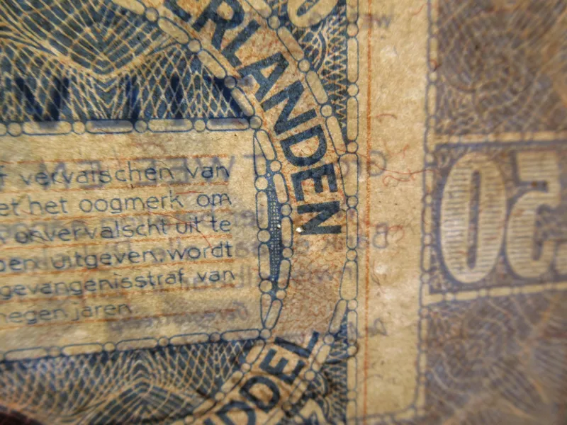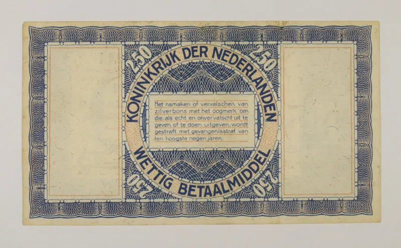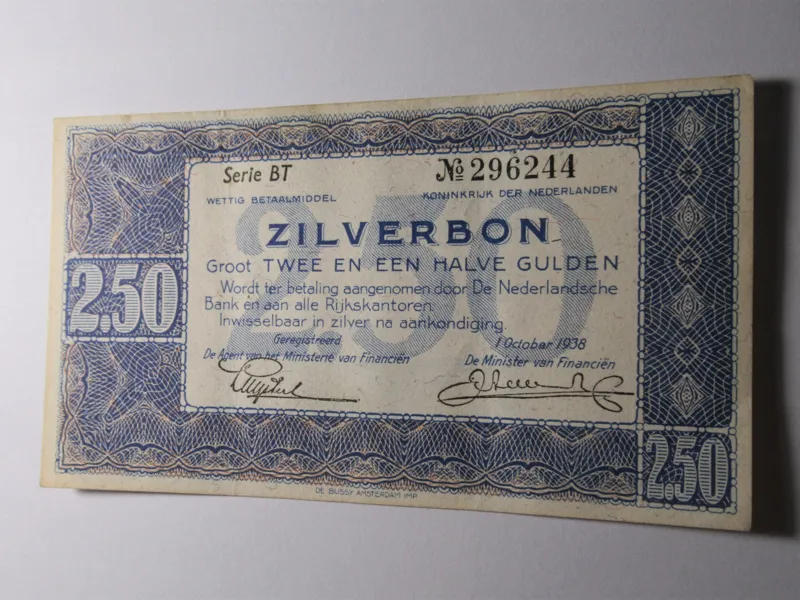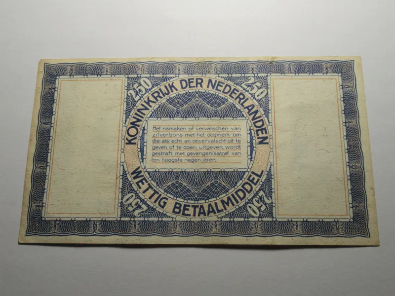 * این اسکناس معروف است به بُن نقره یعنی ضمن اعتبار بعنوان وجه رایج، قابل تبدیل به نقره بود، بنا بر تعهد بانک مرکزی هلند، مندرج روی آن.
