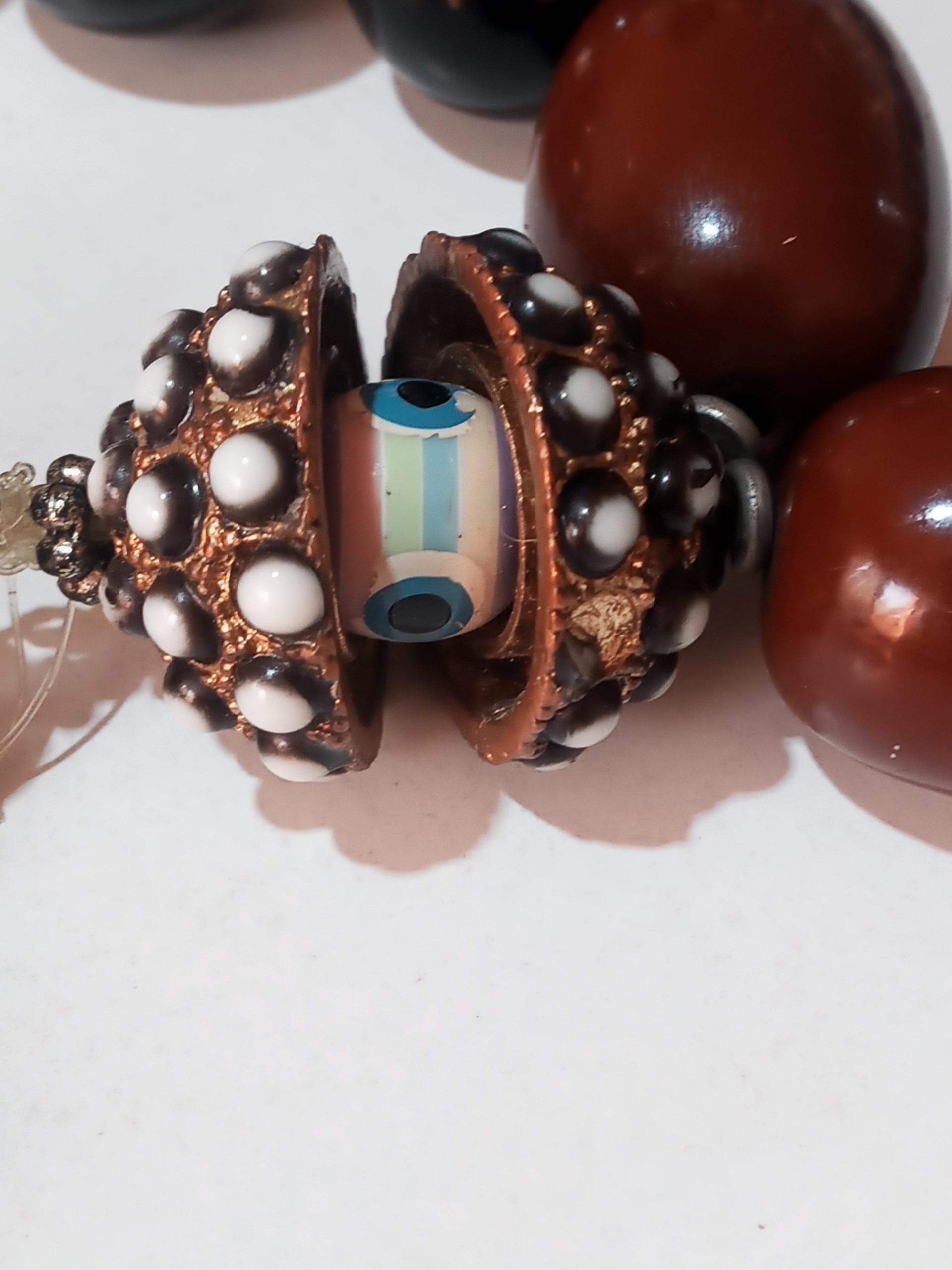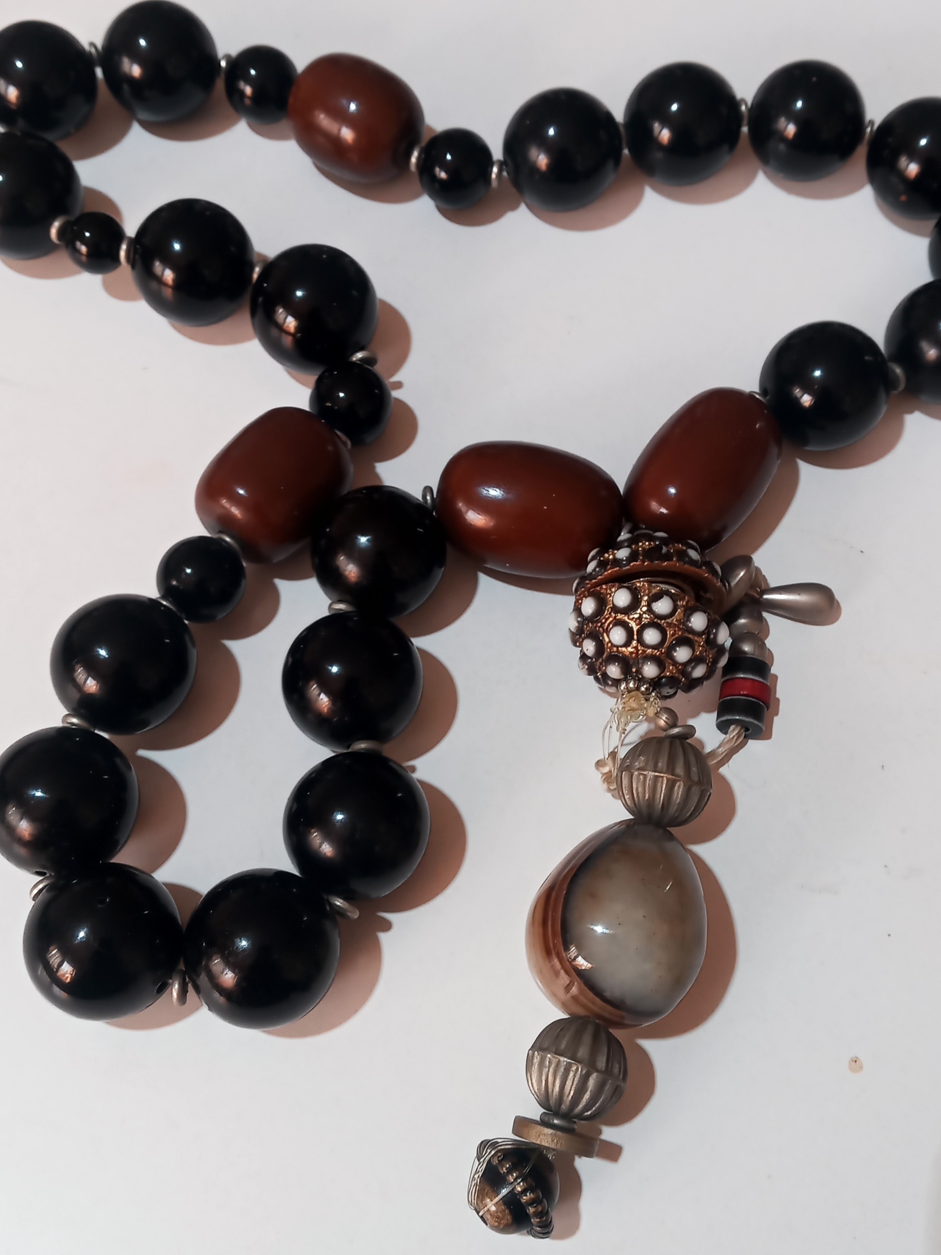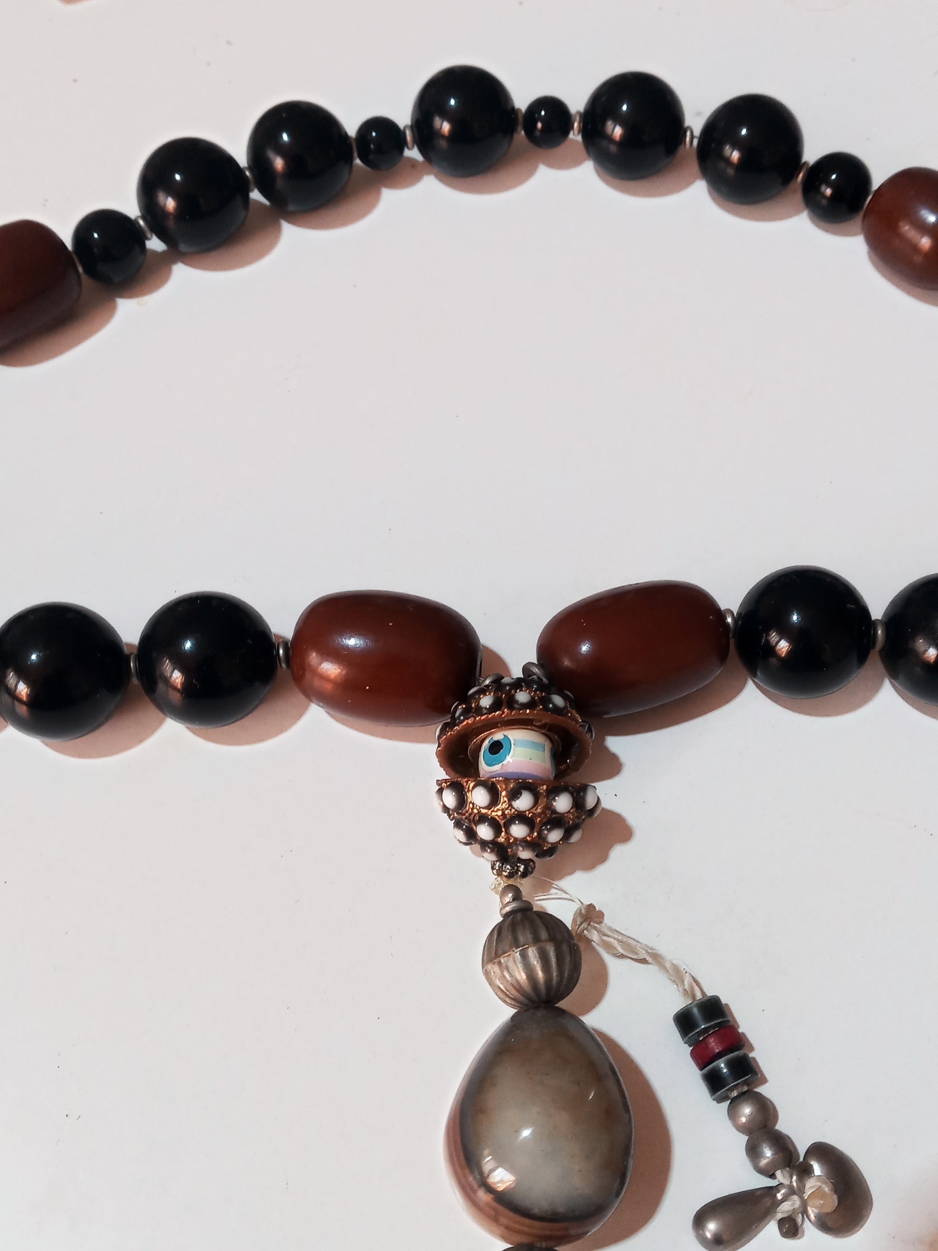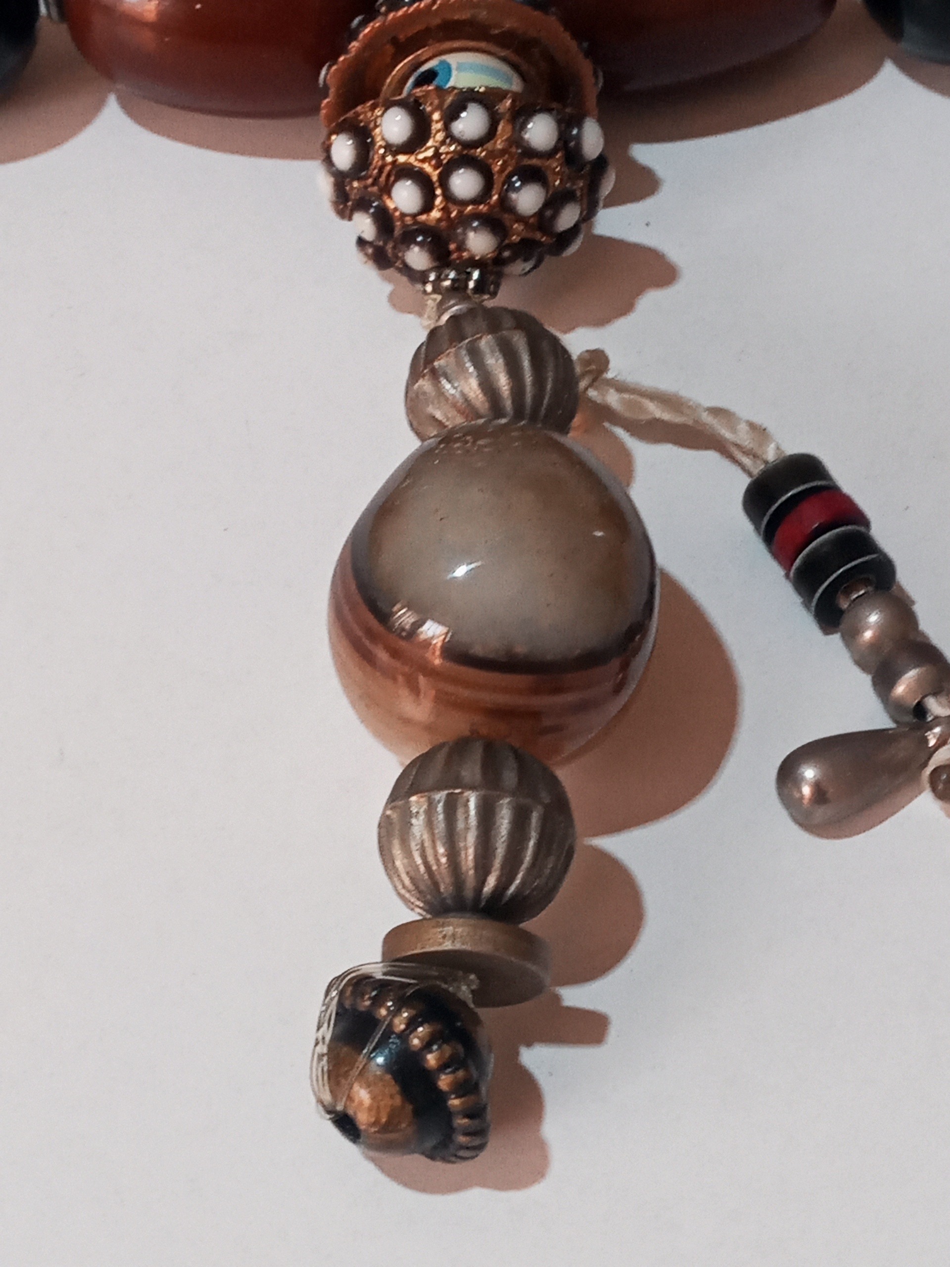 تسبیح بسیار درشت وارداتی کلکسیونی سنگین بسیار جذاب با سنگ سلیمانی بزرگ تخم مرغی وصدف برنجی نگین دار