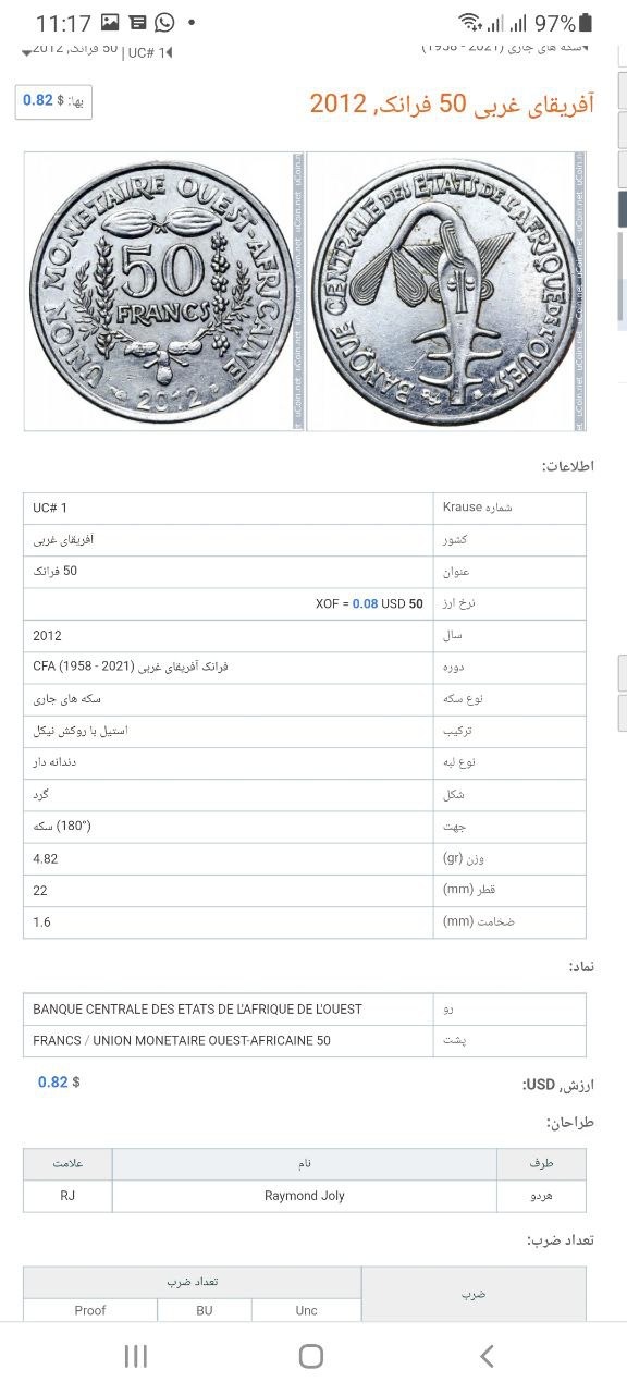 | کشور | فرانک جمهوری آفریقای مرکزی |