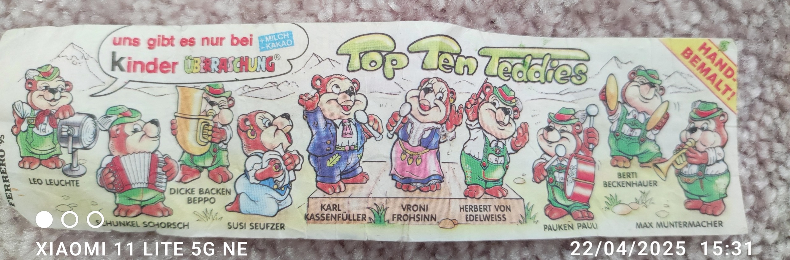 نوستالژی ، اسباب بازی شانسی کیندر، مجموعه 10 تایی کامل گروه موزیک تدی .