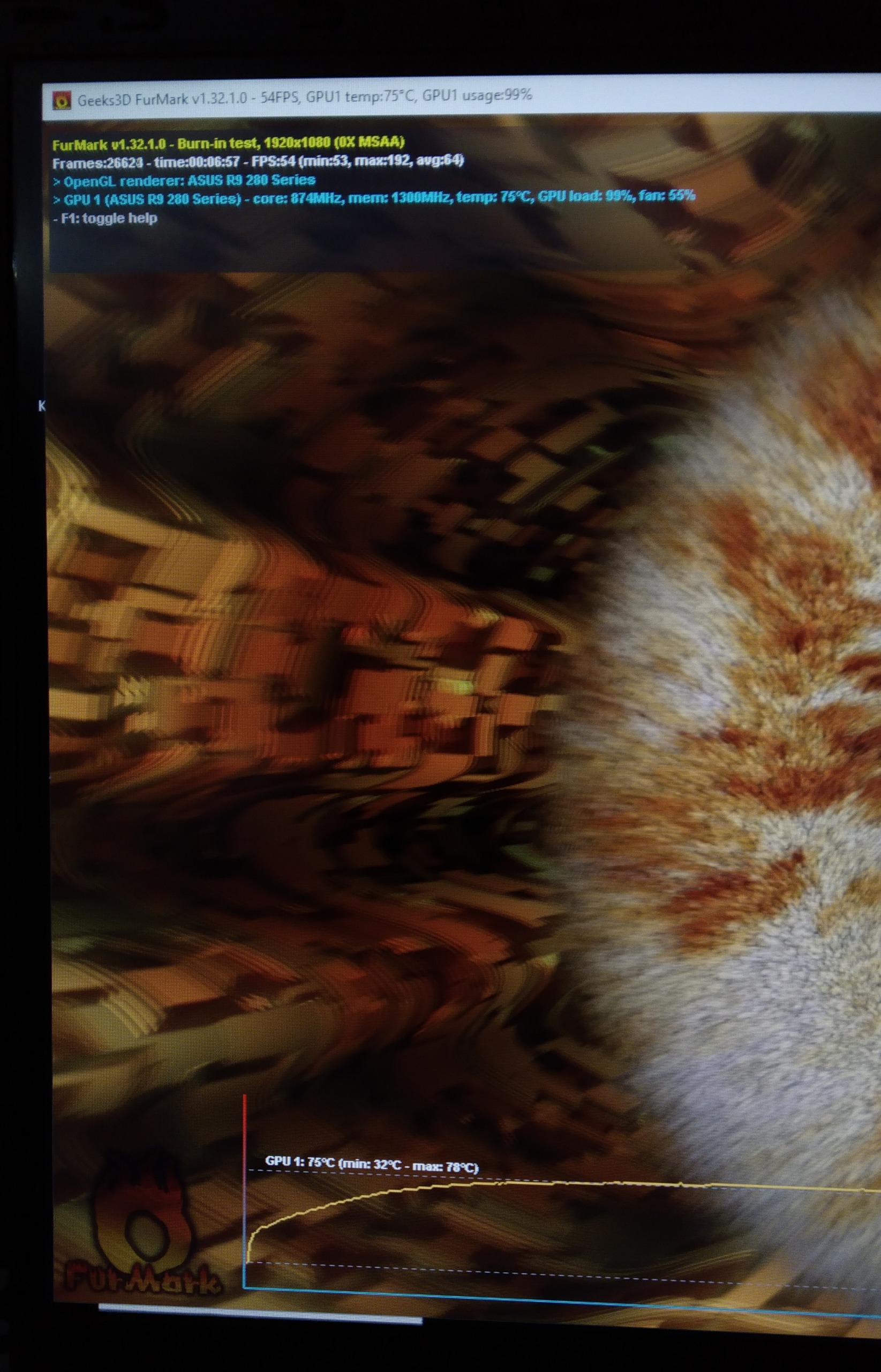 نتیجه تست فورمارک که نهایت فشار وارد شده به گرافیک در حدود 7 دقیقه و رزولیشن 1920*1080 FHD که در عکس آخر قرار داده شده (مشاهده فرمایید) دما کارت نهایت به 75 درجه میرسه که نشان از سلامت گرافیک میباشد