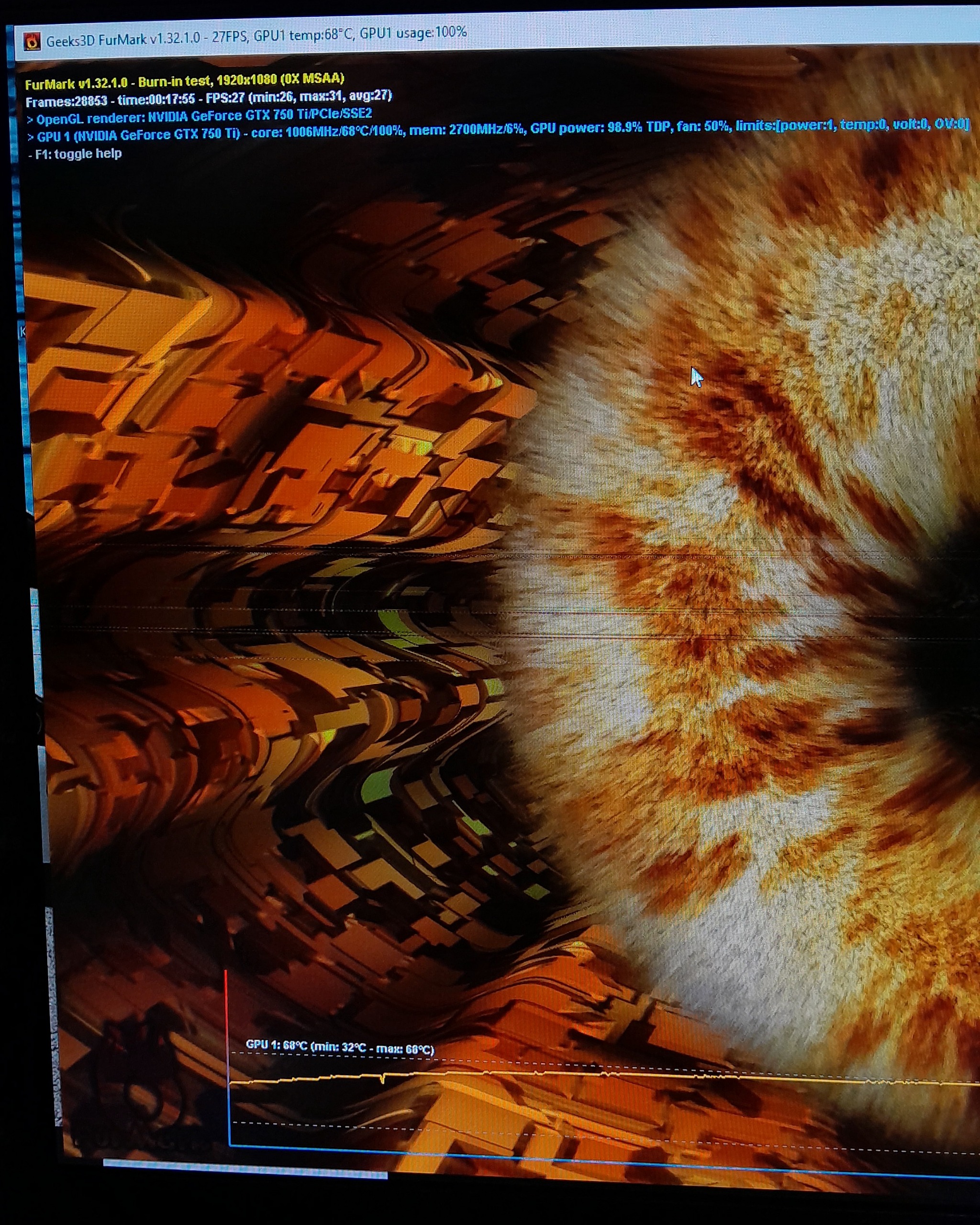 نتیجه تست فورمارک که نهایت فشار وارد شده به گرافیک در حدود 18 دقیقه و رزولیشن 1920*1080 FHD که در عکس آخر قرار داده شده (مشاهده فرمایید) دما کارت نهایت به 68 درجه میرسه که نشان از سلامت گرافیک میباشد
