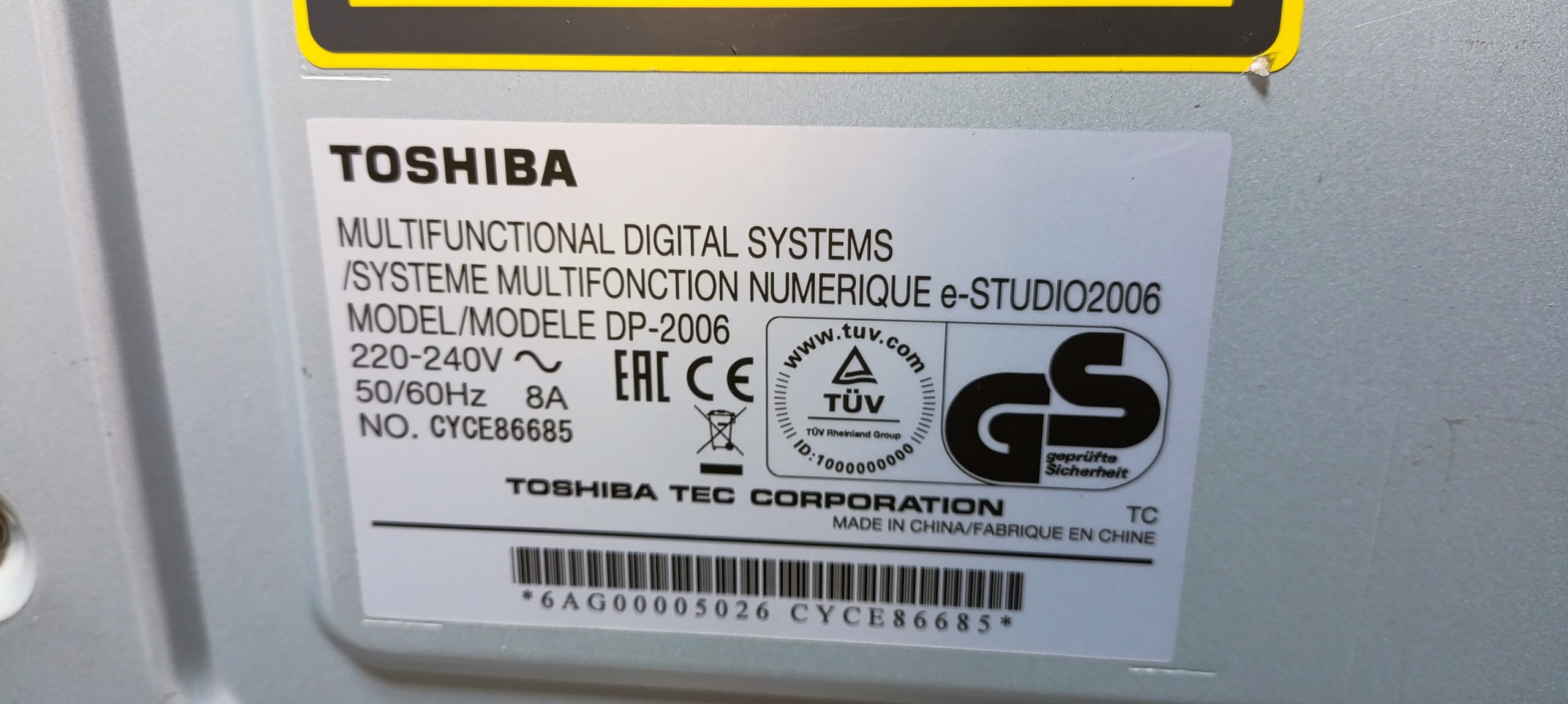 دستگاه فتوکپی توشیبا مدل Toshiba ES-2006 یک دستگاه کپی/پرینت در ابعاد 575*540*402 با وزن 25.5 کیلوگرم توسط شرکت ژاپنی توشیبا تولید شده است.
