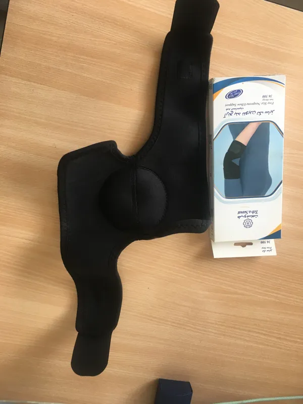 آرنج بند طبی اورجینال نئوپرن فری سایز نظر ظاهری و تمیزی برابر با تصاویر در حد نو ( تقریبا بدون استفاده)  خودم 450 خریدم اما الان 300 میفروشم.