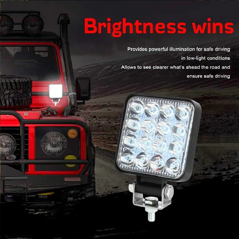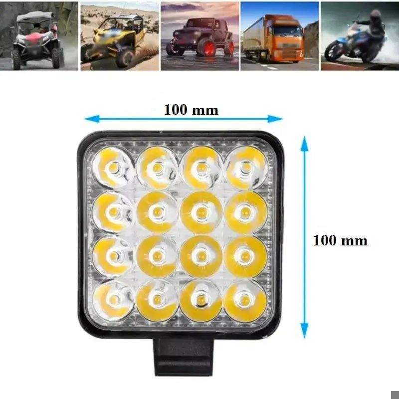 پروژکتور خودرو مدل آفرودی 48 وات با به نام چراغ لایت بار آفرودی با LED Power 16 نیز شناخته می شود و دارای 4 ردیف چراغ LED از نوع همراه با رفلکتور لنز مانند می باشد و موجب تمرکز نوری بالایی می شود