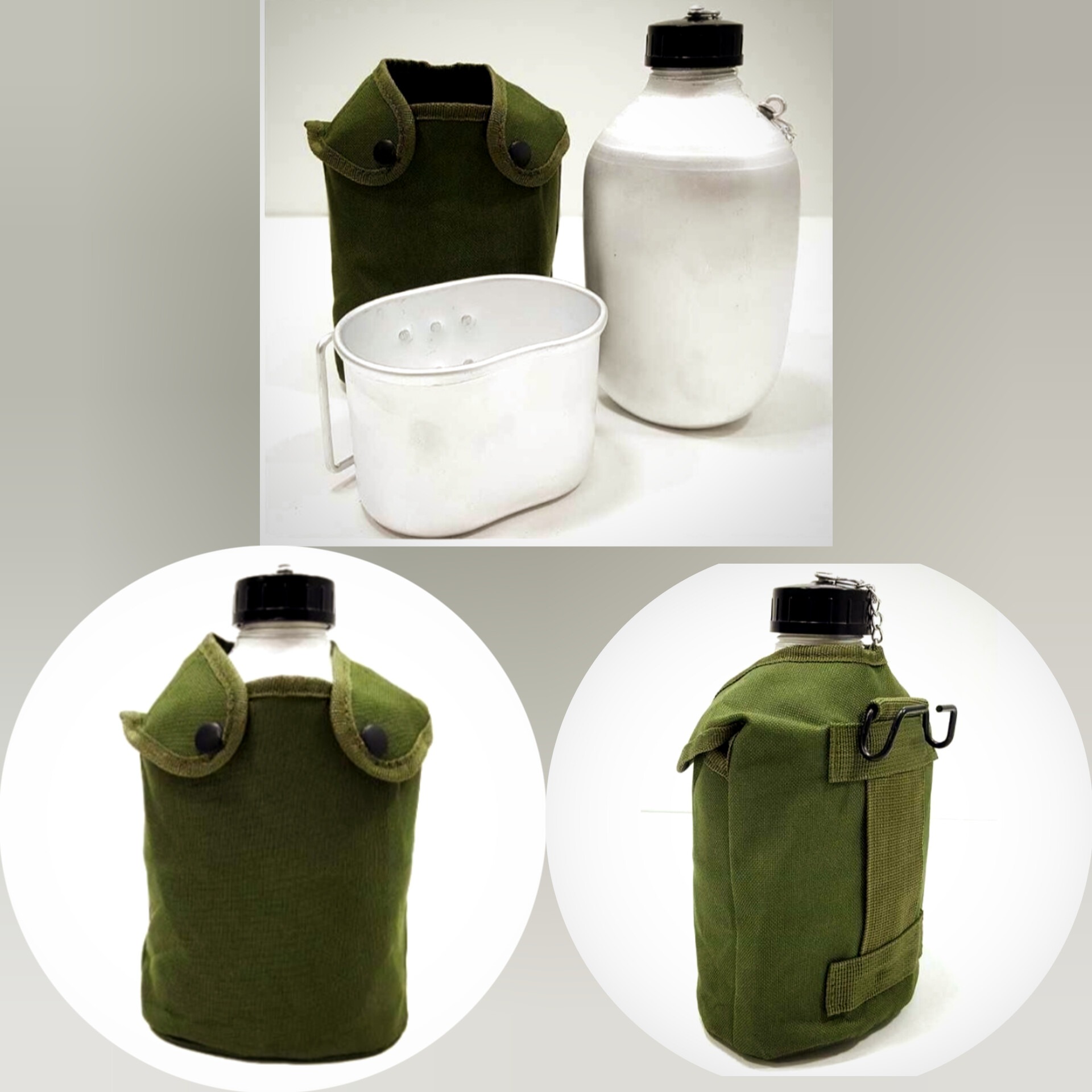 قمقمه کوهنوردی دارای جنس بدنه آلومینیوم محکم می باشد. ارتفاع قمقمه کوهنوردی 22 سانتی متر و عرض 13 سانتی متر می باشد. ظرفیت قمقمه کوهنوردی 1لیتر و 350 میلی لیتر می باشد و نوع خروجی آب به صورت پیچی می باشد. قمقمه کوهنوردی دارای یک ظرف آلومینیوم یا همان یقلوی دسته دار می باشد که کاربرد آن برای جوشاندن آب یا درست کردن غذا می باشد. قمقمه کوهنوردی آلومینیومی دارای یک محفظه برزنتی محکم است که این محفظه قابل وصل شدن به کمربند، کوله پشتی و... می باشد.
