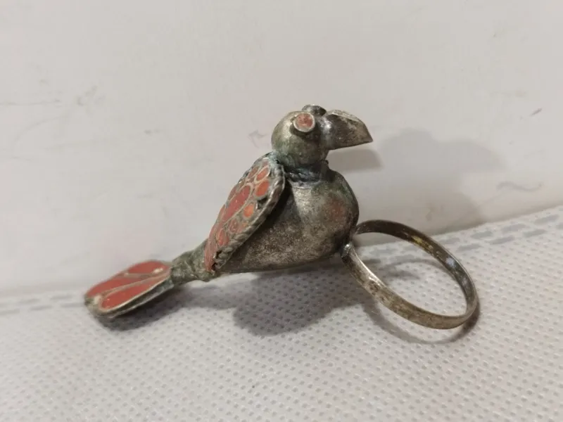 انگشتر قدیمی پرنده مرجان کاری شده