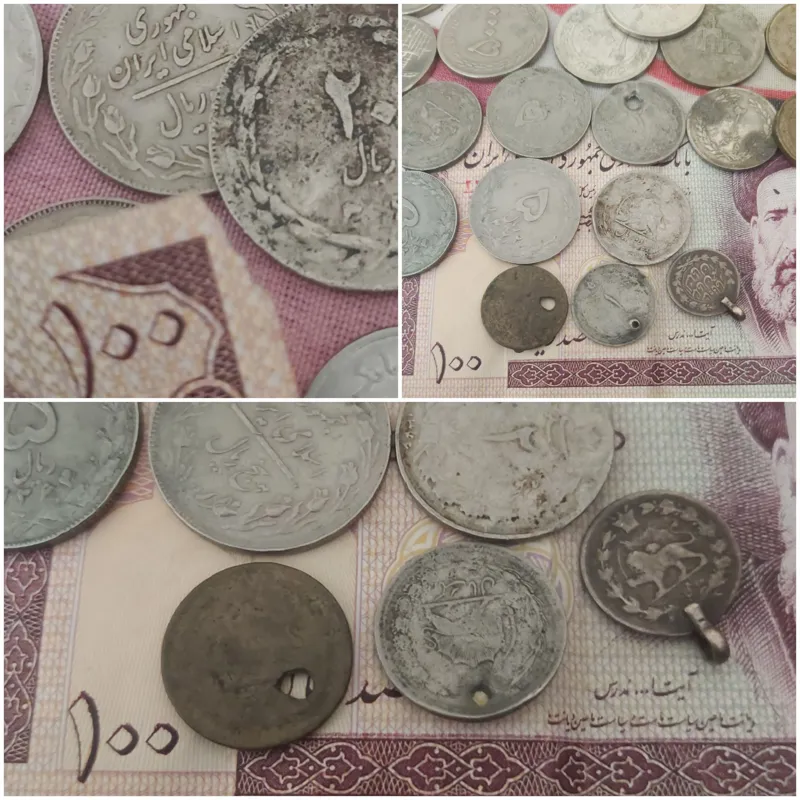 پول کاغذی مثل نو یه گوشه یه زره کنده شده یه دونه از سکه ها هم که افغان هست یکی از سکه ها هم فکر کنم مثل اینکه قیمت روش نزده قدیمیه اون کوچیکه که یه اهن کوچیک بهش وصله