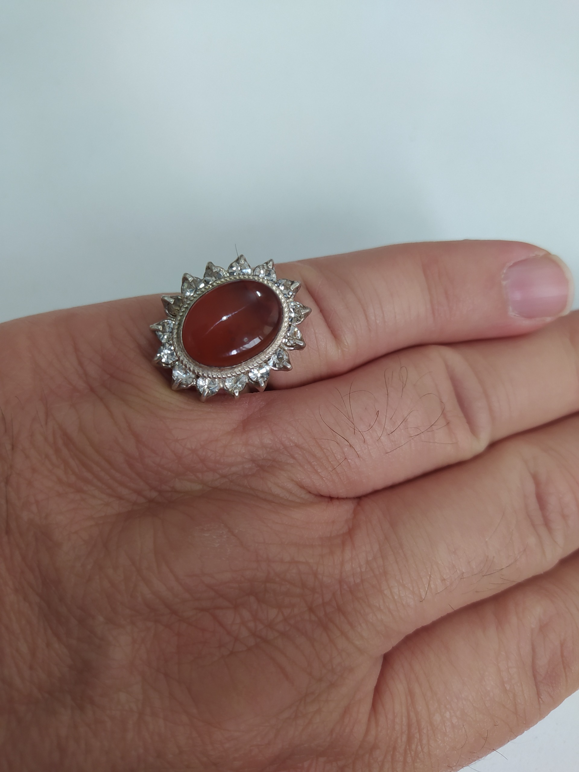سلام دوستان عزیز . انگشتر نقره زنانه عیار 925 . نگین عقیق یمنی اصلی . سایز حدود 60 . وزن 6 گرم