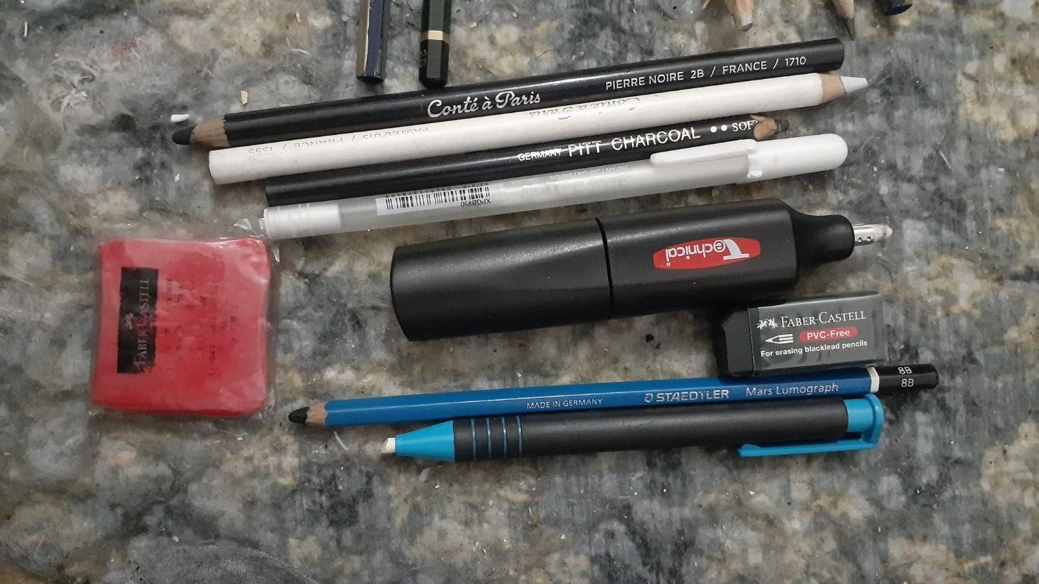 . تعدادی وسایل طراحی و سیاه قلم بصورت یکجا بفروش میرسد. همه اقلام رو نشد توی عکس چا بدم. لیست میکنم مهم هاشو. قیمت لیستی که میدم رو سایت پرهام زدم 7 تومن شد. من کلشو بعلاوه مقداری وسایل دیگه شامل مداد کیف مداد کیف قلمو پاک کن محو کن و ... میدم 5 تومن. اکثرا استفاده نشدن. بعضیاشون یکم استفاده شدن. سوالی بود درخدمتم