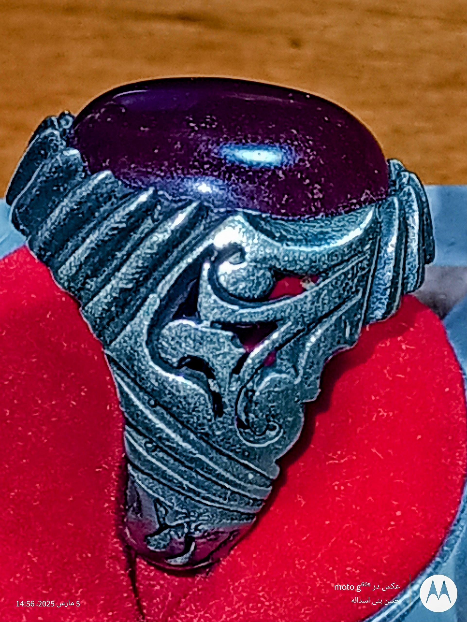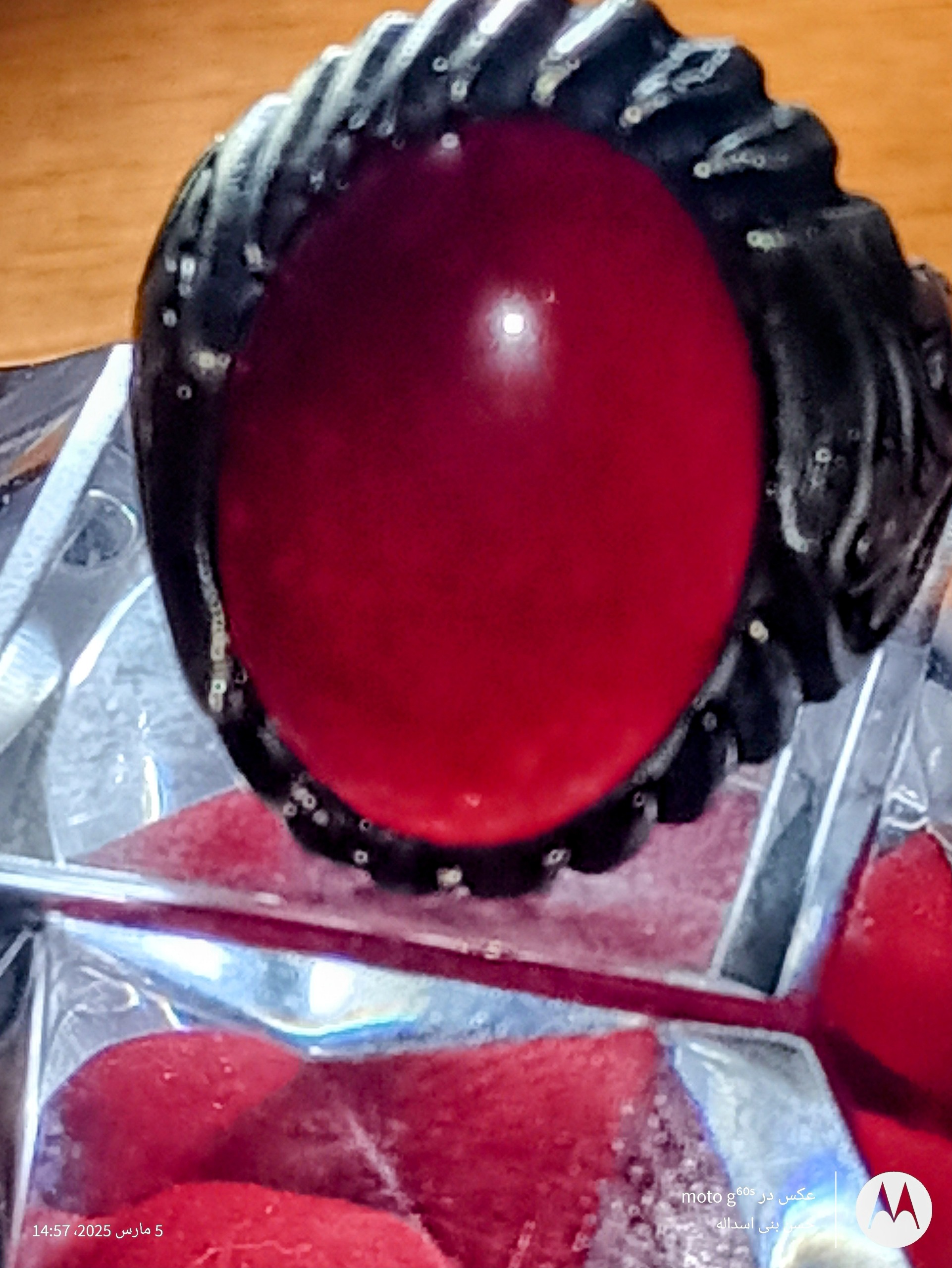انگشتر با رکاب سیلندری بسیار زیبا و نگین یشم سرخ زغال دار معدنی هند درشت و خوش رنگ سایر 63