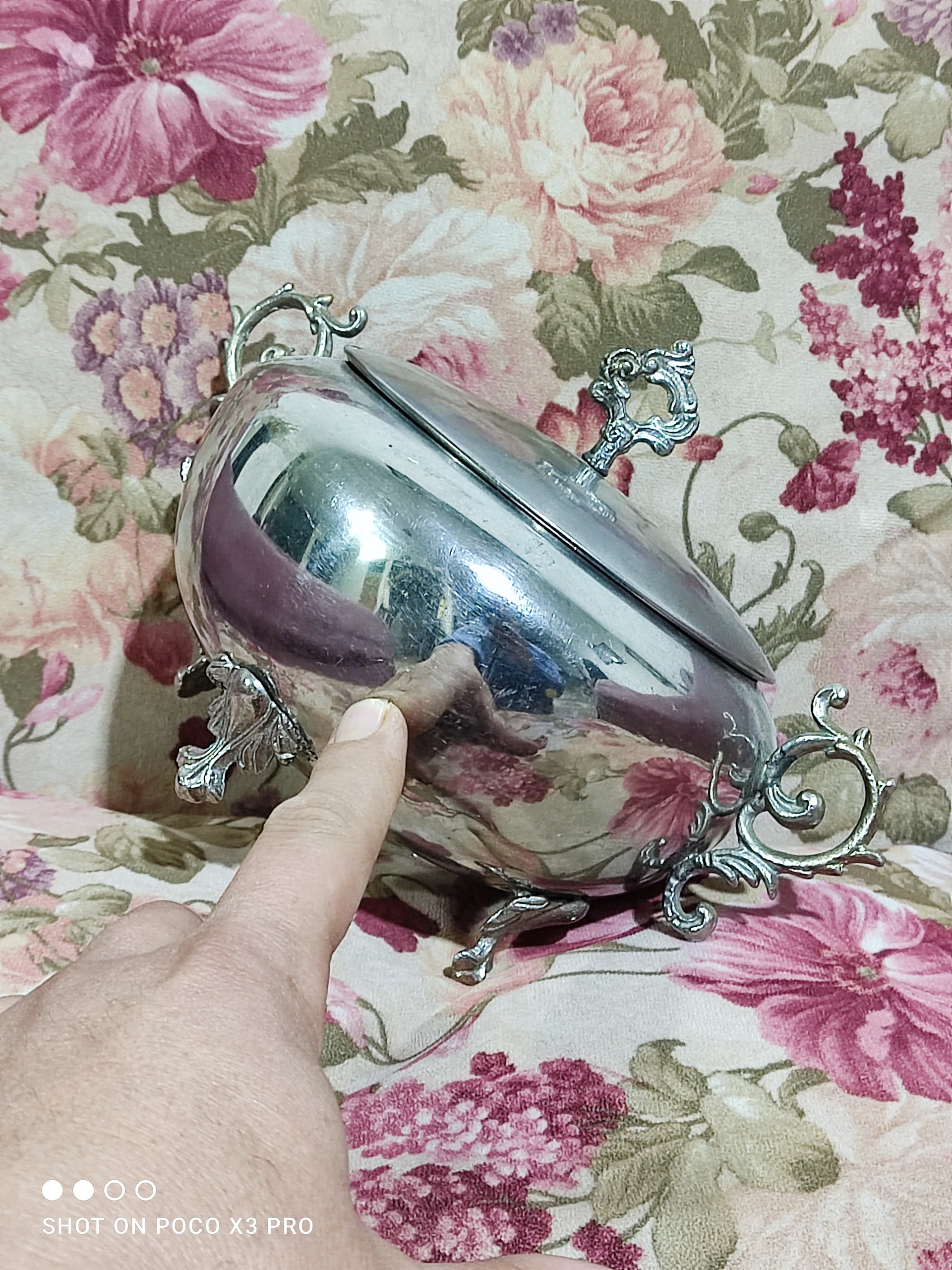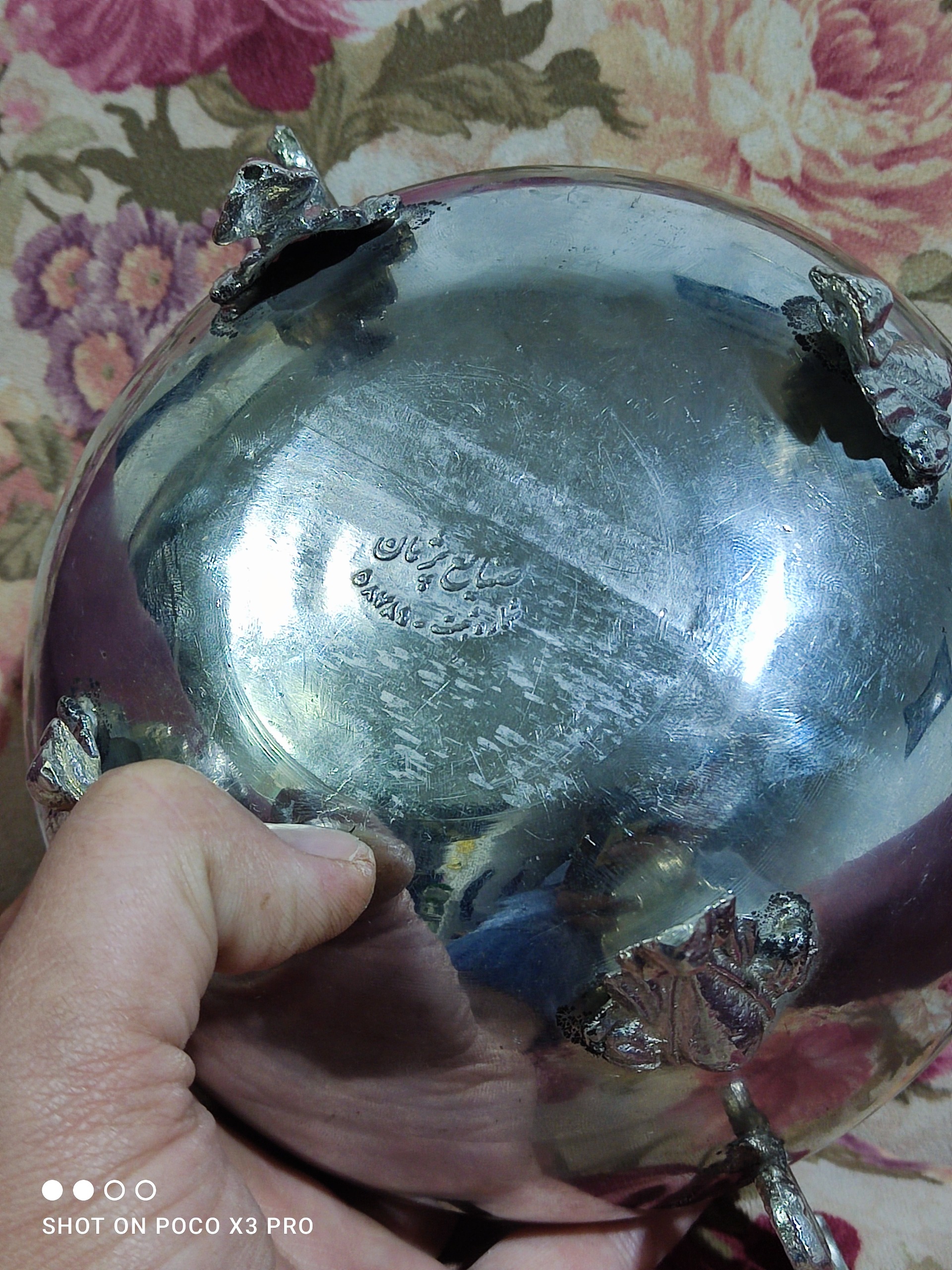 قندان مسی قدیمی سایز بزرگ شایدم شیرینی خوری باشه مهردار و بسیار کمیاب و بکر استفاده نشده نو نو آک مونده سنکین و جوندار مطابق تصاویر