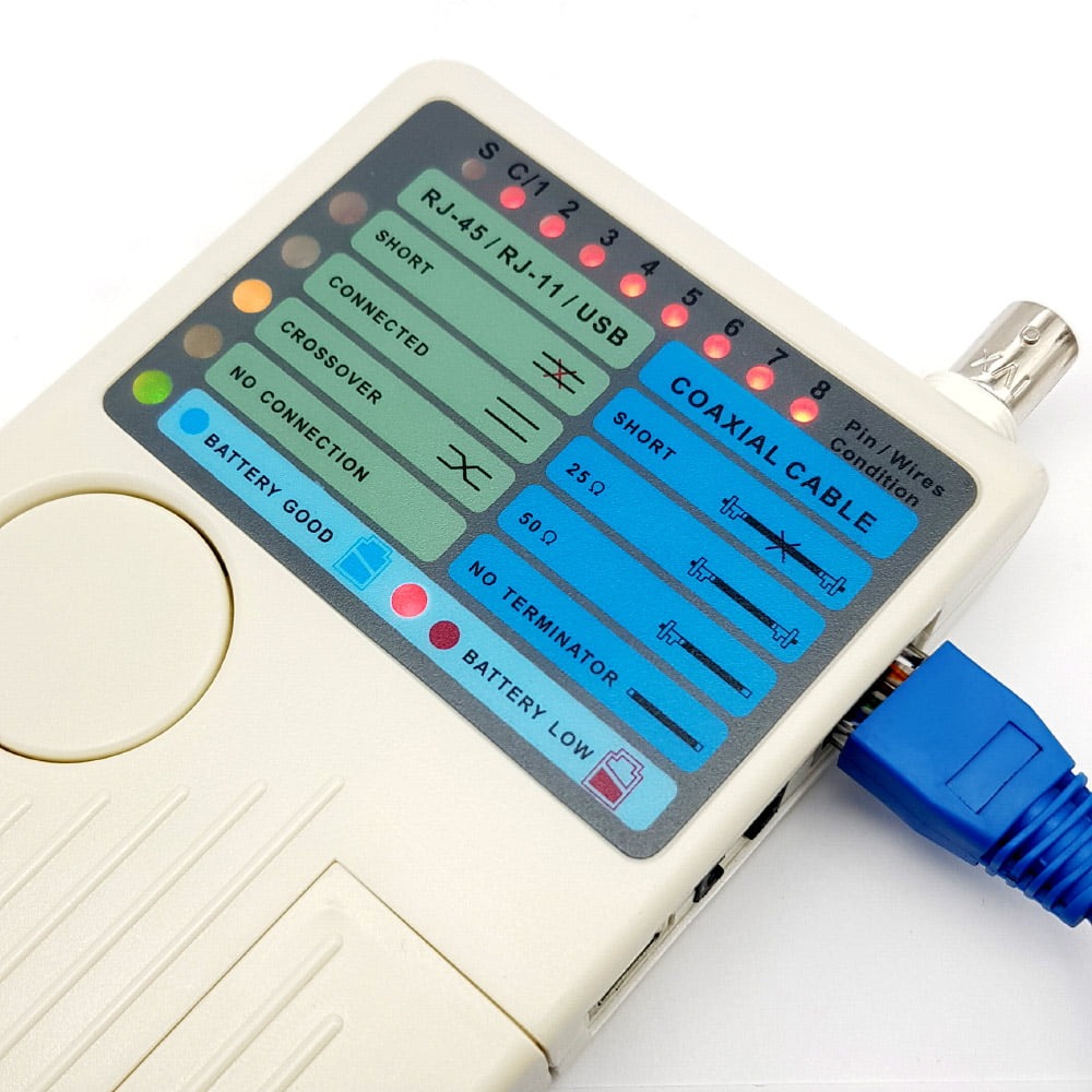 Features: Test 4 types of cables: RJ-45, RJ-11, USB and BNC. Test installed wiring or patch cables.