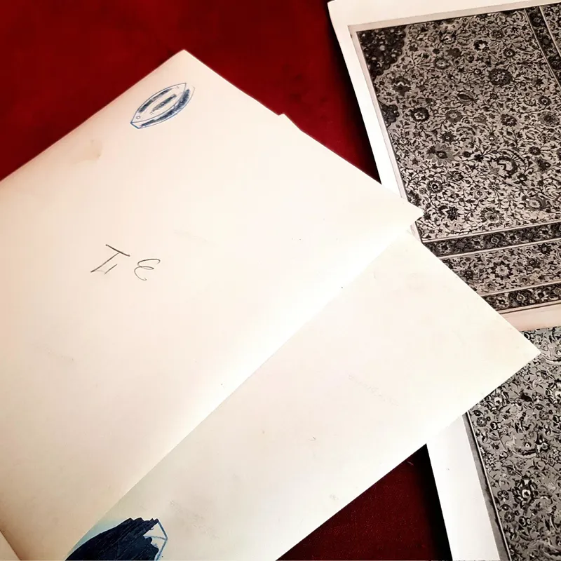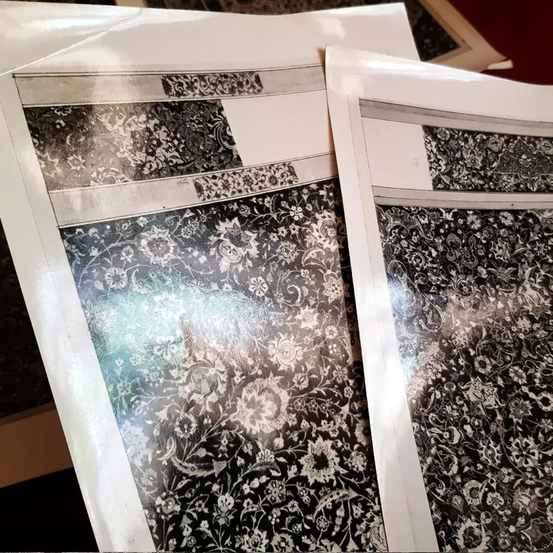 چاپ بر روی کاغذ عکاسی ، قدیمی حدود 40،50 ساله ،  احتمالا متعلق به استادکار نقشه کش قالی بوده