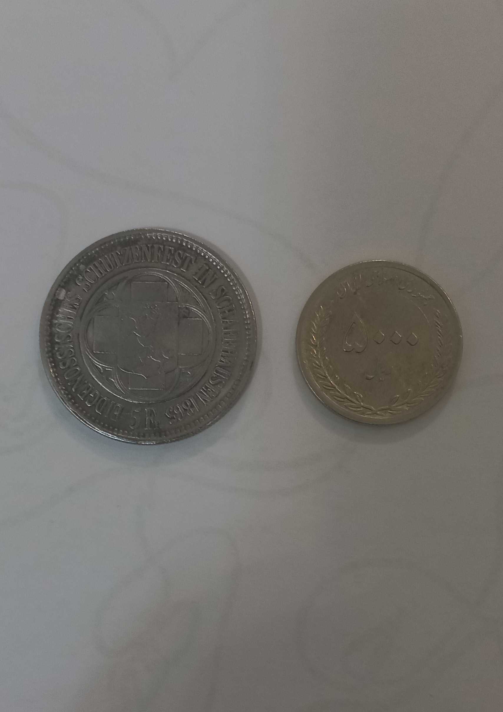 سکه 5 فرانک 1865 سکه پونصد تومنی برای اندازه وزیری و مقیاس گذاشته شده
