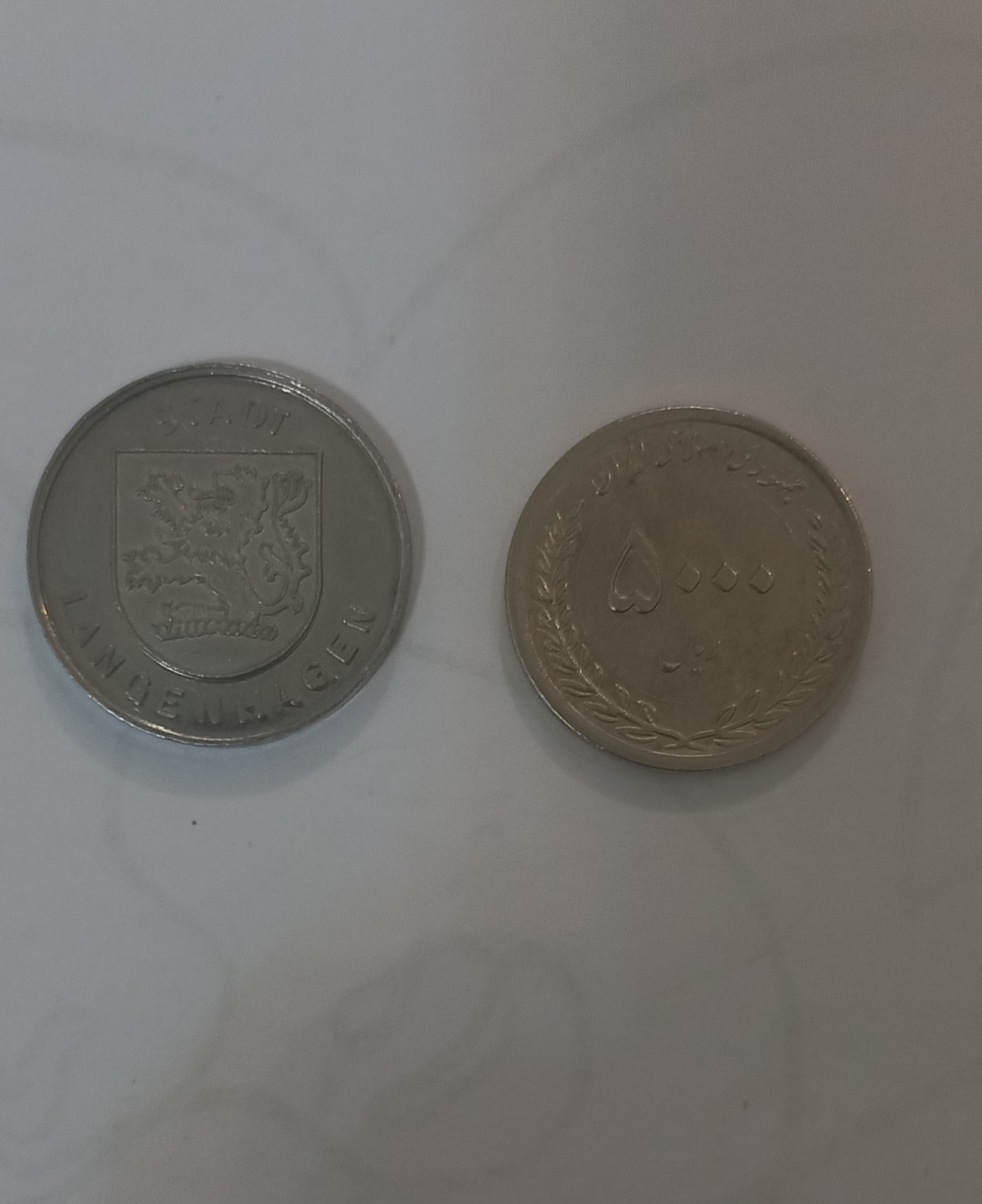 سکه یادبود خارجی سکه پونصد تومنی برای مقیاس اندازه گذاشته شده