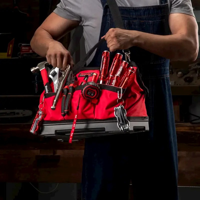 بله درست است! رونیکس کیف ابزار RH-9101 خود را همراه با تمام متعلقاتی که دستِ کم برای کارهای فنی عمومیتر به آنها نیاز دارید، طراحی و تولید کرده است. این کیف ابزار، از پارچه آکسفوردی باکیفیت تولید شده است و مقاومت بالایی به سایش دارد. کیف ابزار RH-9101 رونیکس، مجموعهای از ابزارهای کاربردی و صنعتیِ متناسب با نیازهای شما را در خود جا داده تا با خیال راحت کارهای فنی خود را انجام دهید. در این بخش، ویژگیها و متعلقات این کیف ابزار بررسی میشود.