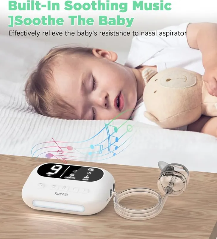 نور شب برای شب و موسیقی یکپارچه: نور ملایم شب راه حلی عملی برای والدین برای پاک کردن مجرای بینی کودک در هنگام تغذیه یا اختلالات شبانه ارائه می دهد. با پخش کننده موسیقی داخلی قابل تنظیم آسپیراتور بینی نوزاد، می توانید به کودک خود اجازه دهید به ملودی های سرگرم