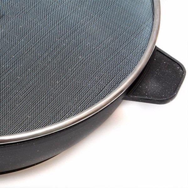 درب توری روغن گیر ، ابزاری کاملاً کاربردی جهت استفاده در آشپزخانه ها است . این محصول درواقع یک درب قابلمه می باشد که به جای سطح یک تکه از جنس فلز و یا شیشه پیرکس ، دارای سطحی توری شکل از جنس فلز می باشد که اطراف (لبه های توری) آن را قابی فلزی در بر می گیرد . نوع طراحی این توری به شکلی است که در زمان سرخ کردن مواد غذایی ، هنگامی که روغن به سمت بیرون ظرف می پاشد ، از شدت آن می کاهد و مانع از پخش شدن آن بر روی سطوح می شود . علاوه بر این از درب توری می توانید در هنگام نیاز به هوا خوردن مواد غذایی برای جلوگیری از ورود حشرات به داخل ظرف و یا حتی جداسازی و تخلیه آب مواد از داخل ظرف استفاده نمایید ، کافیست درب را به صورت ثابت نگه دارید و ظرف را کمی به یک سمت متمایل کنید تا بدون نیاز به استفاده از آبکش ، آب مواد غذایی از آنها جدا و از داخل ظرف به بیرون تخلیه شود . درپوش توری روغن گیر با قطر 25 سانتی متر قابل استفاده برای قابلمه ، ماهیتابه و یا هر ظرف دیگری در آشپزخانه می باشد ، با امکان بهره برداری و شست و شوی آسان