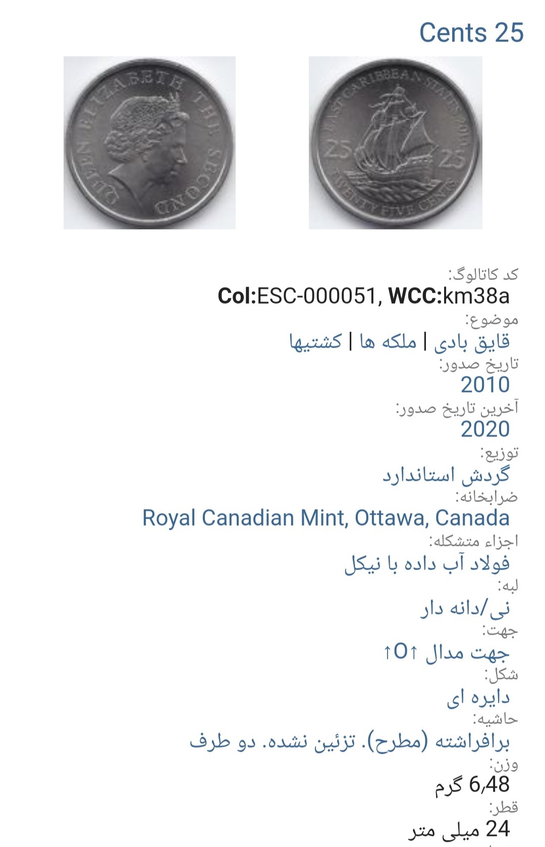 سکه25سنت کارائیب نایاب2020(کد6001)