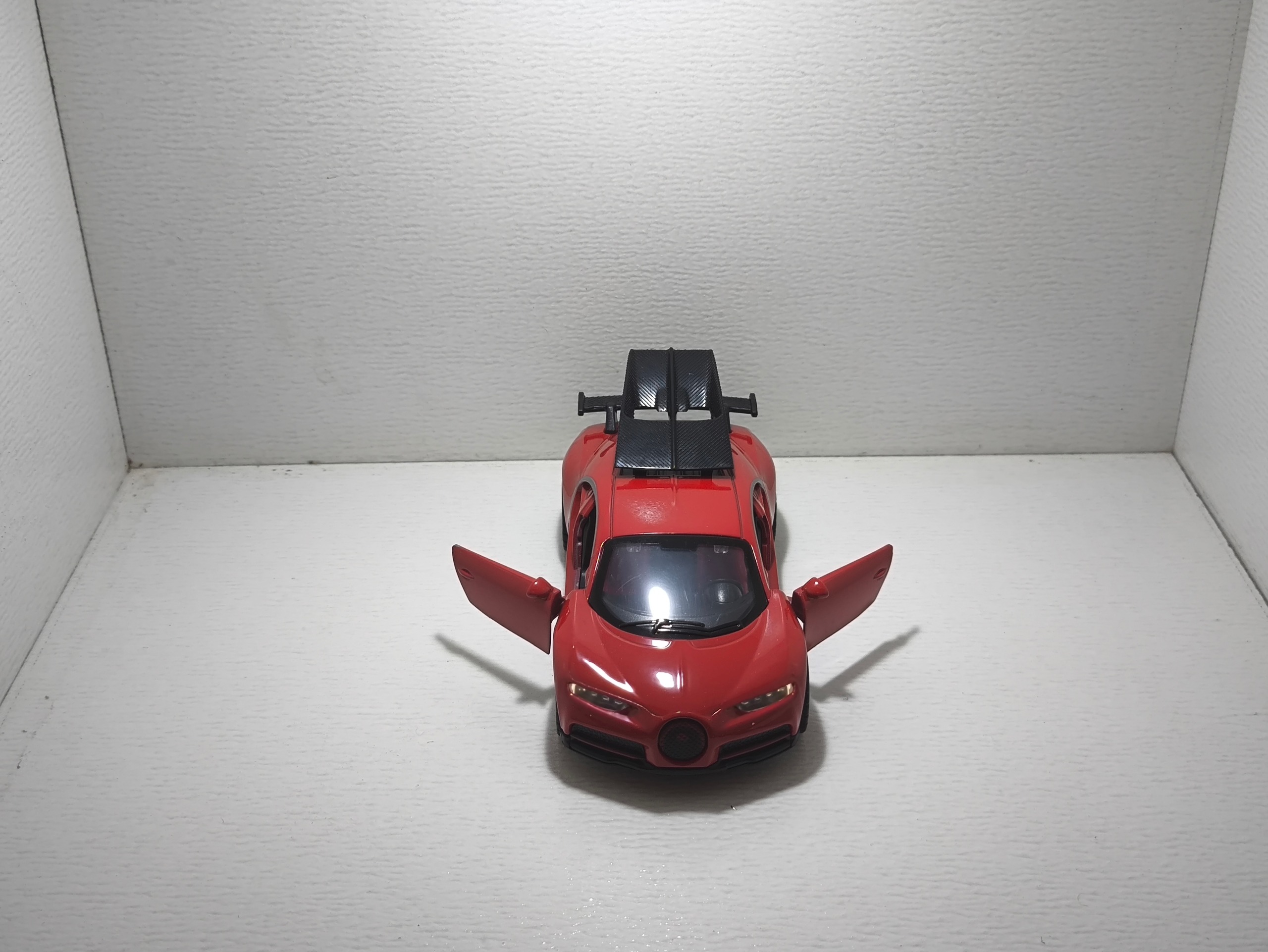 ماکت ماشین فلزی بوگاتی موزیکال و چراغدار و عقب کش قدرتی،رنگ قرمز، سه درب بازشو، کیفیت فوق العاده است و جزئیات داخلی ماشین به خوبی رعایت شده است، این محصول آماده ارسال میباشد، سفارشات عمده یک هفته طول میکشد.