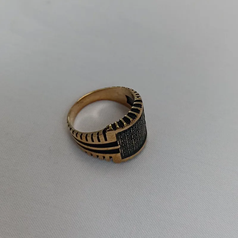 این انگشتر دارای نگین های زیاد بسیار ریزی است (تقریبا بالای 35عدد) که همگی بسیار محکم و با ظرافت مثال زدنی درون رکاب قرار گرفته اند و چشم هر بیننده ای را از دور و نزدیک بسوی خود جلب میکند
