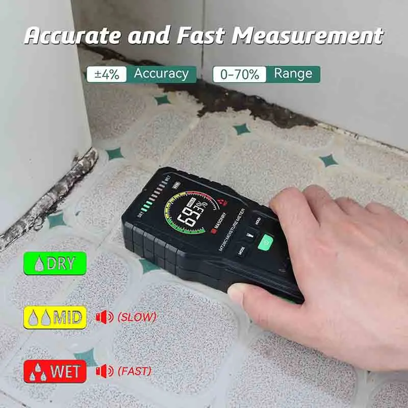 رطوبت سنج پینلس رطوبت نسبی ناشی از نشت و سیل را تشخیص می دهد و میزان رطوبت نسبی در مصالح ساختمانی شما را اندازه گیری می کند.