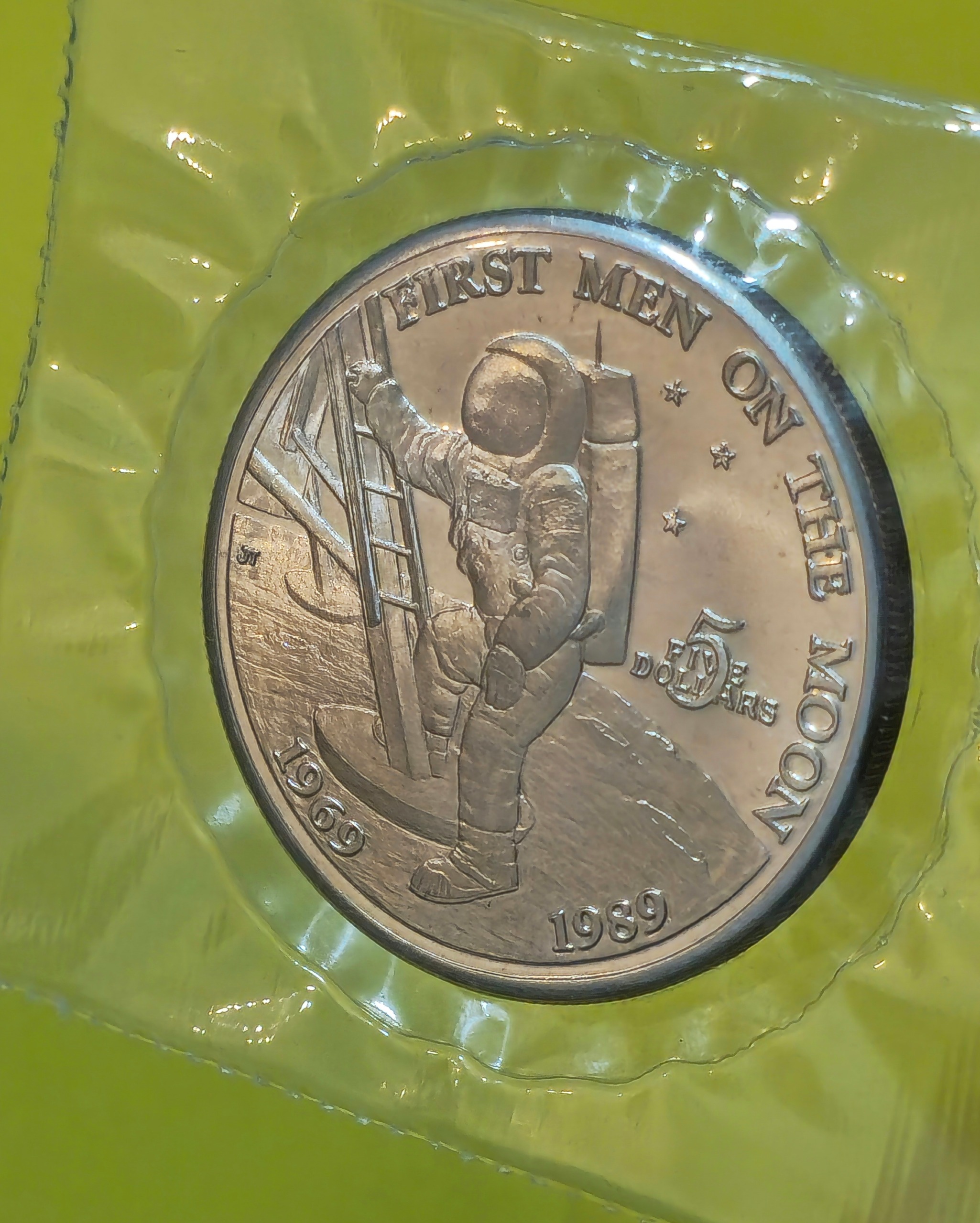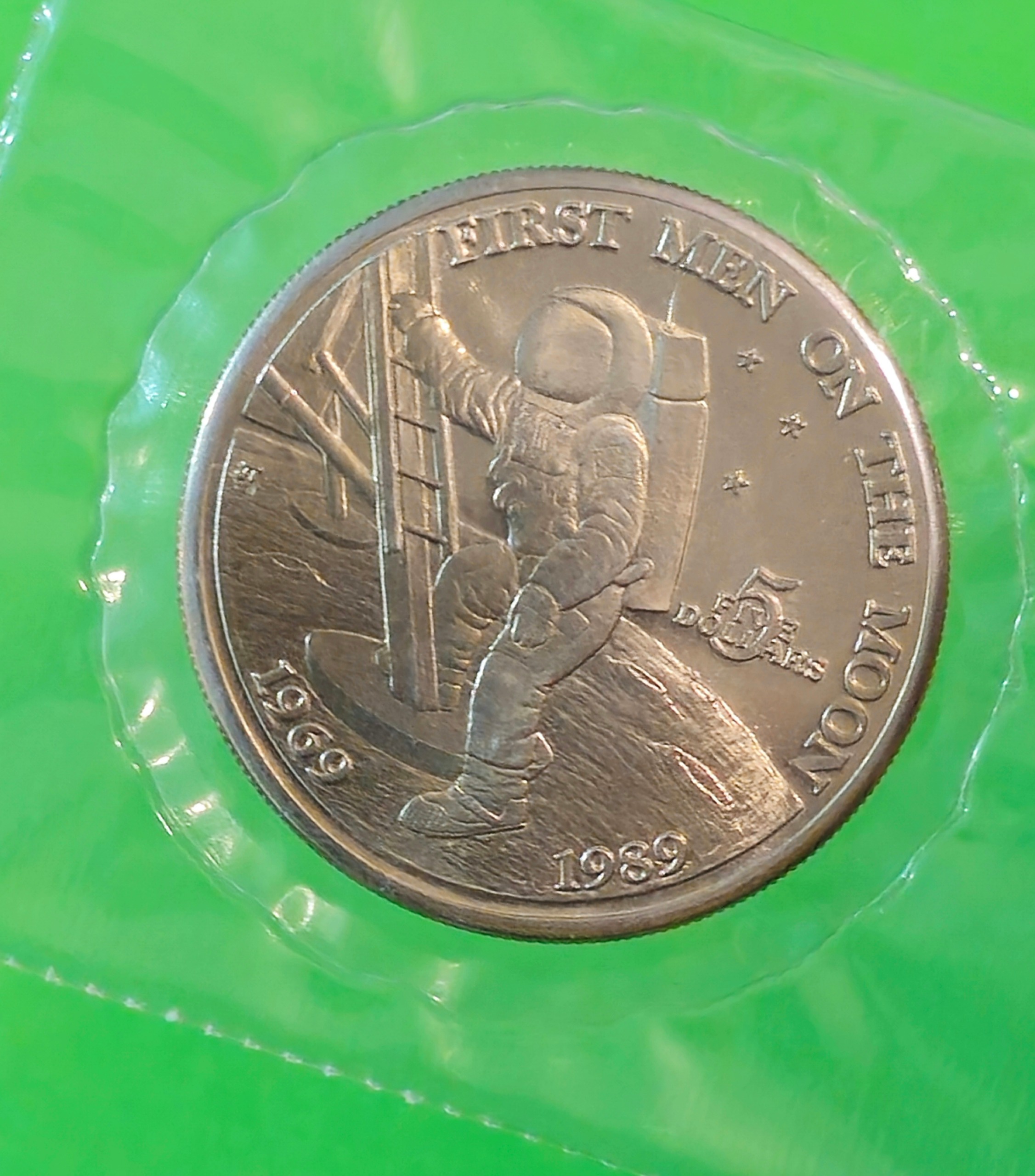 سکه نایاب بزرگ یادبود 5 دلاری اولین انسان روی ماه (1989)