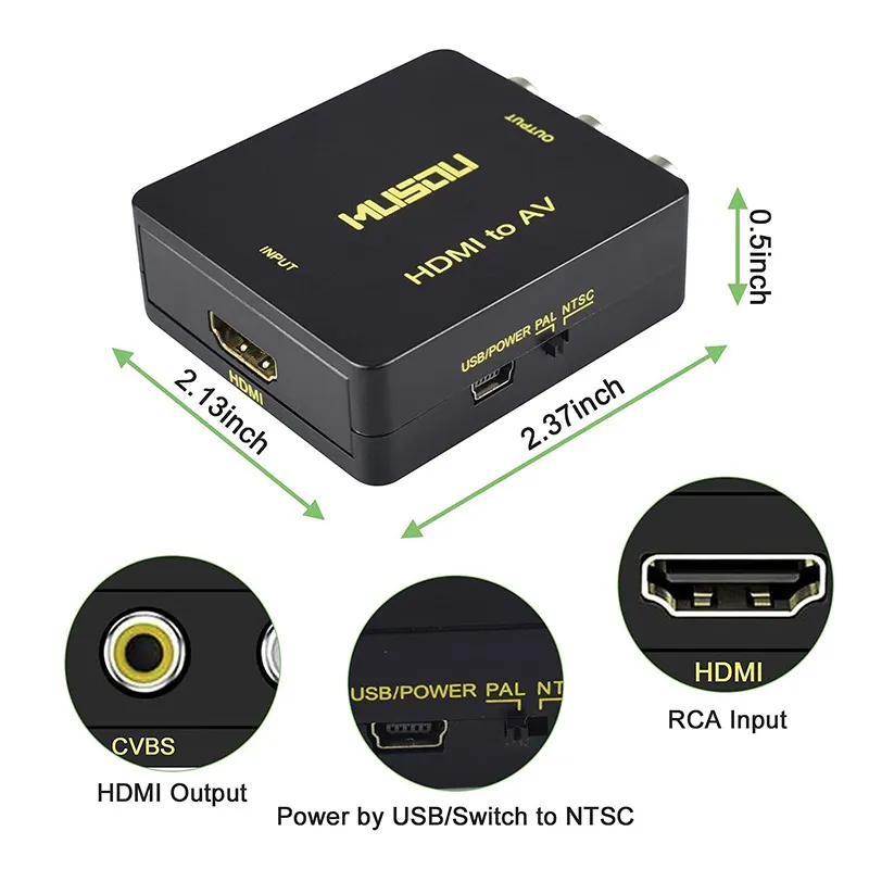 آداپتور HDMI به AV : مبدل HDMI به AV 1080P با کابل شارژ USB ، یک سیگنال دیجیتال HDMI با وضوح بالا را به یک سیگنال ویدئویی کامپوزیت آنالوگ تبدیل می کند .