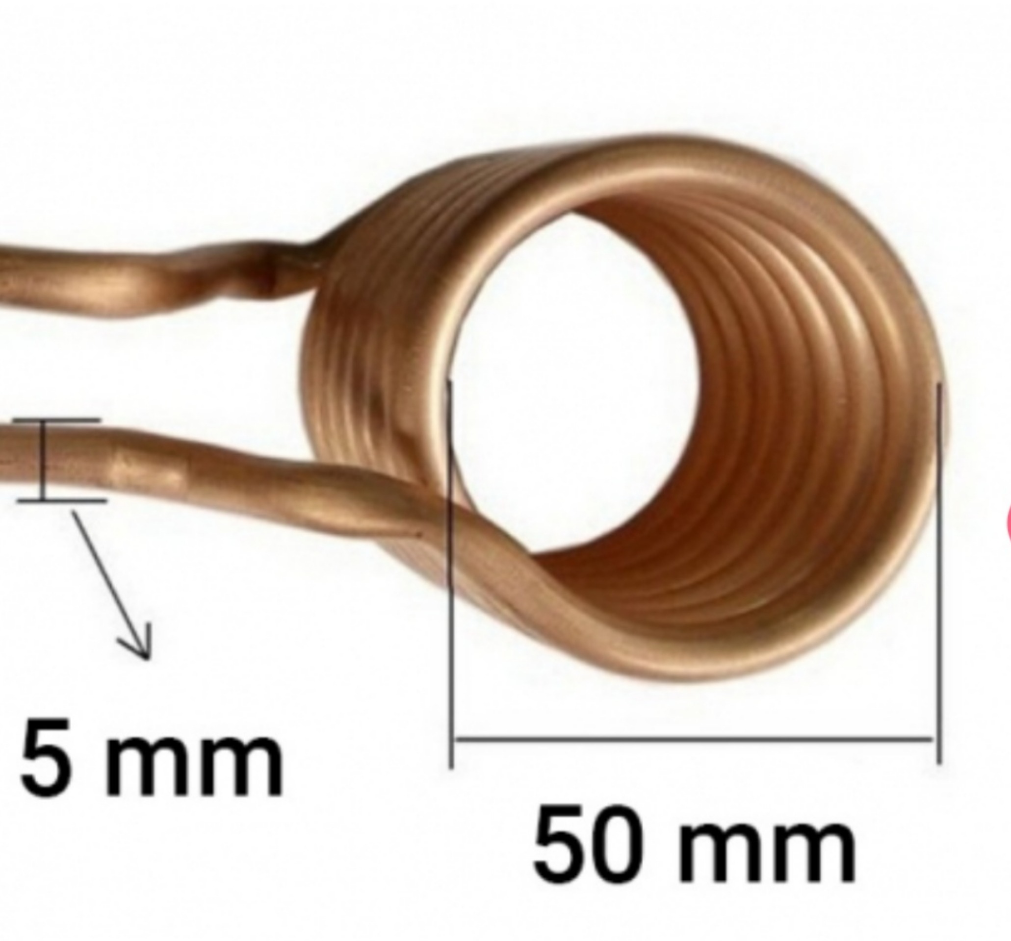 بوته مناسب(سیم پیچ) لوله مسی سایز5میلیمتر و7دورمیباشدکه همراه کوره القایی ارسال میشود