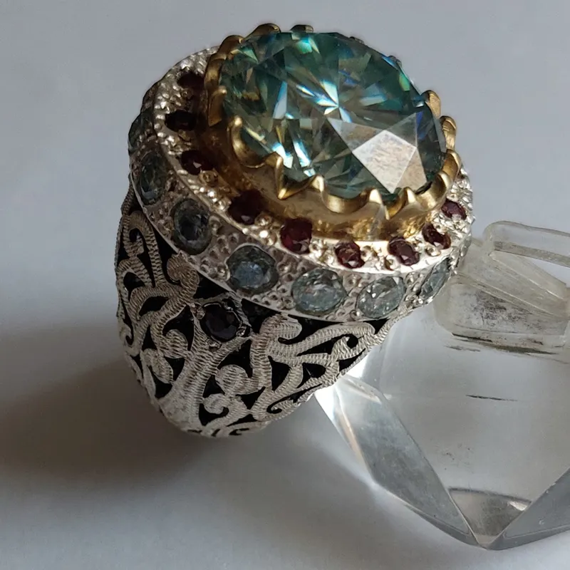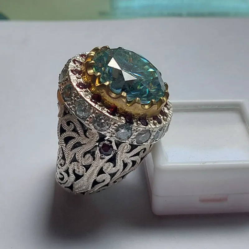 انگشتر موزانایت روس عالی درجه یک طلعلوع بی نظیر فعال باسختی 10