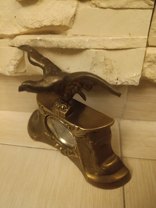 اگر بهدنبال یک اثر هنری کلاسیک و باشکوه برای دکوراسیون منزل یا محل کار خود هستید، این ساعت رومیزی برنزی با طراحی مجسمه عقاب، انتخابی بینظیر است.